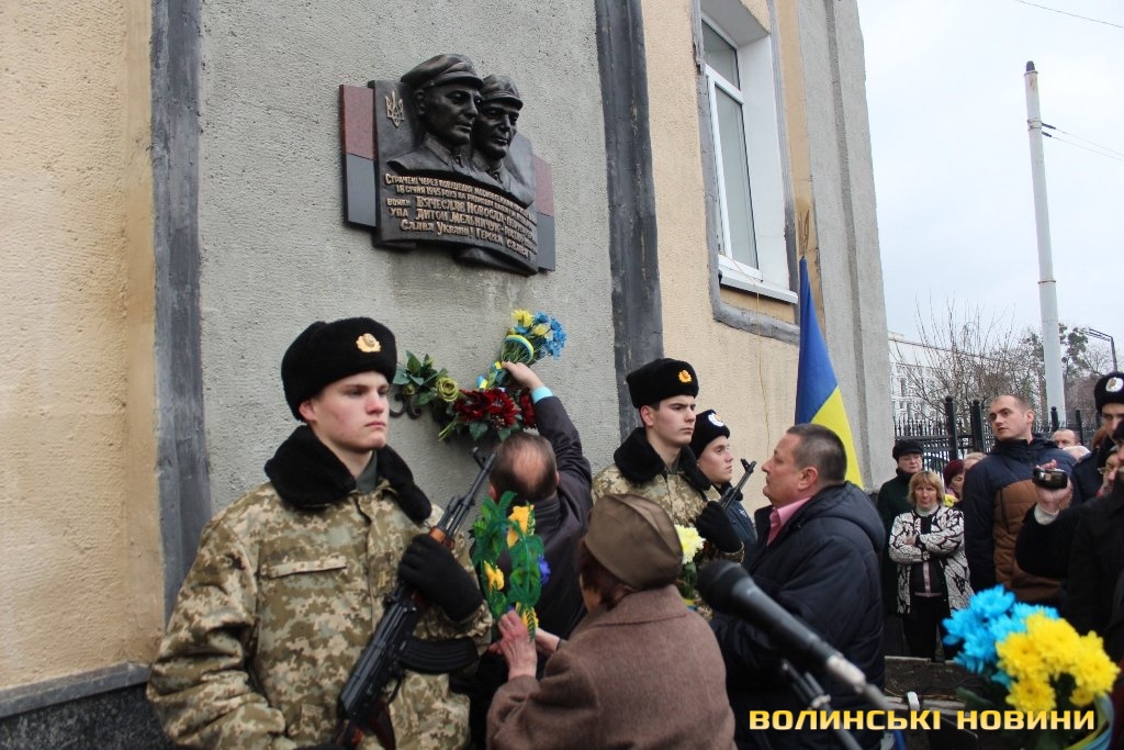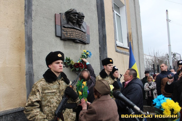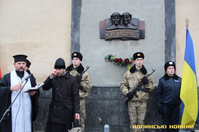 «Сьогодні ми зібралися, аби відкрити меморіальну дошку, на якій увіковічена пам’ять двох молодих волинян-патріотів, які були страчені у січні 1945 року за те, що любили та боролися за Україну. Загиблі патріоти були родом із Горохівщини, і кожен з них пройшов короткий, але складний шлях борця за Україну. Вони довели, що були віддані Батьківщині до останнього подиху, адже коли їх страчували, то останні слова їх були «Слава Україні!», - наголосив Григорій Пустовіт.Опісля настоятель братського Хрестовоздвиженського храму – протоієрей Василь Клочак освятив встановлену пам’ятну дошку.