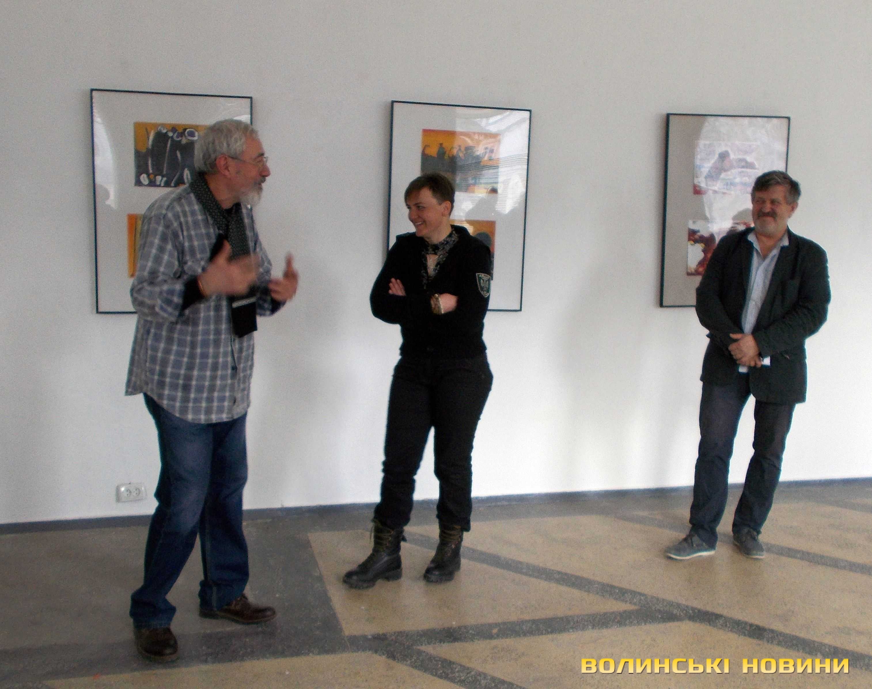 (До речі, Світлана Луців була присутня на відкритті експозиції і розповіла про свою роботу з Володимиром Чорнобаєм над проектом «Водні знаки». Свого партнера по проекту вона згадала як «зануду», бо вже дуже прискіпливим до деталей і процесу виконання був пан Володимир).