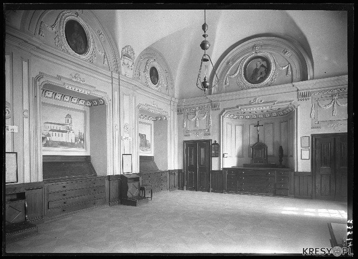 Ризниця у кафедральному костелі Петра і Павла. Настінні малюнки збереглися, портрети-медальйони - ніІнтер'єр Великої синагоги. Втрачений під час Дургої світової війни