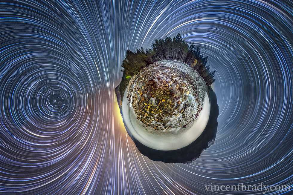 Вінсент Бреді знайшов оригінальний спосіб закарбувати нічний небосхил. Установка з чотирьох камер знімала 360-градусів небесного полотна протягом трьох годин. Довга витримка та об'єктив "риб'яче око" дозволили упіймати траєкторії руху зірок, інформує Gazeta.ua.
