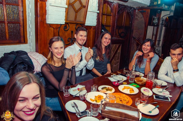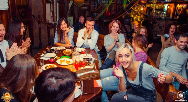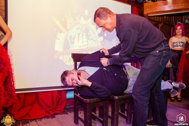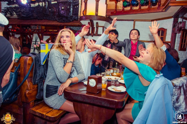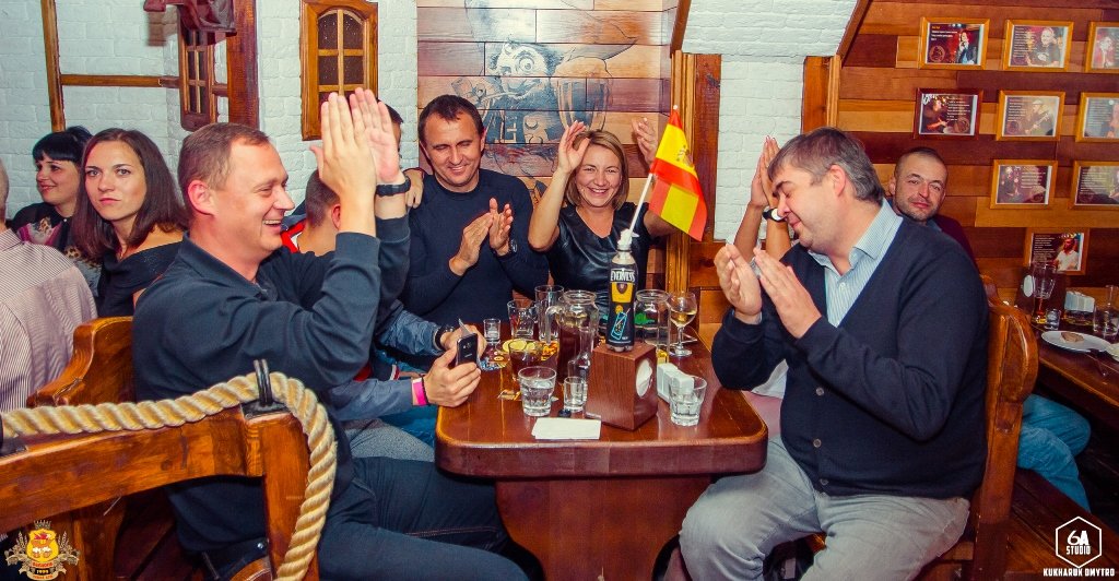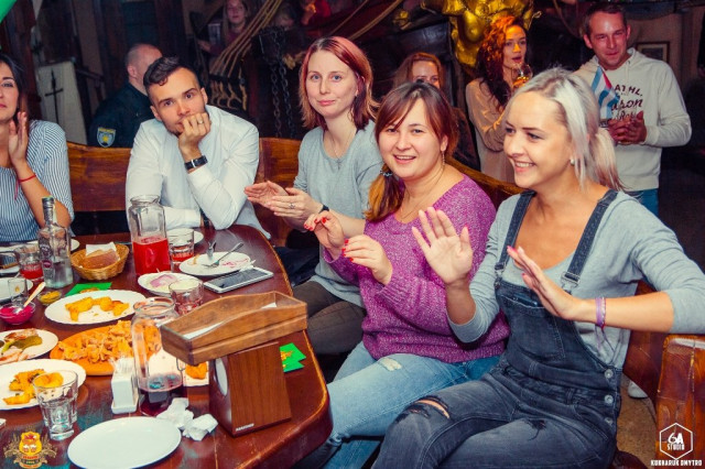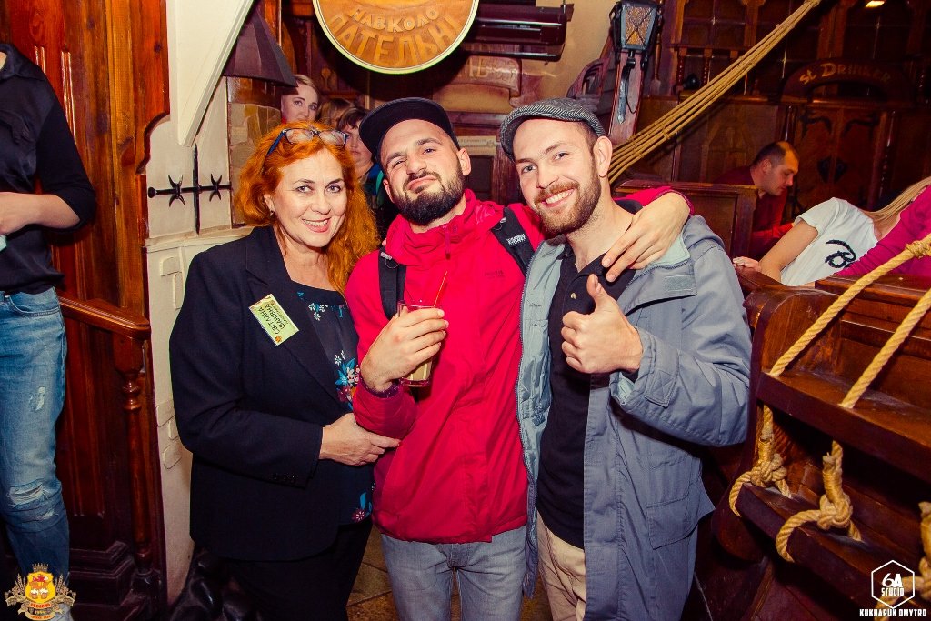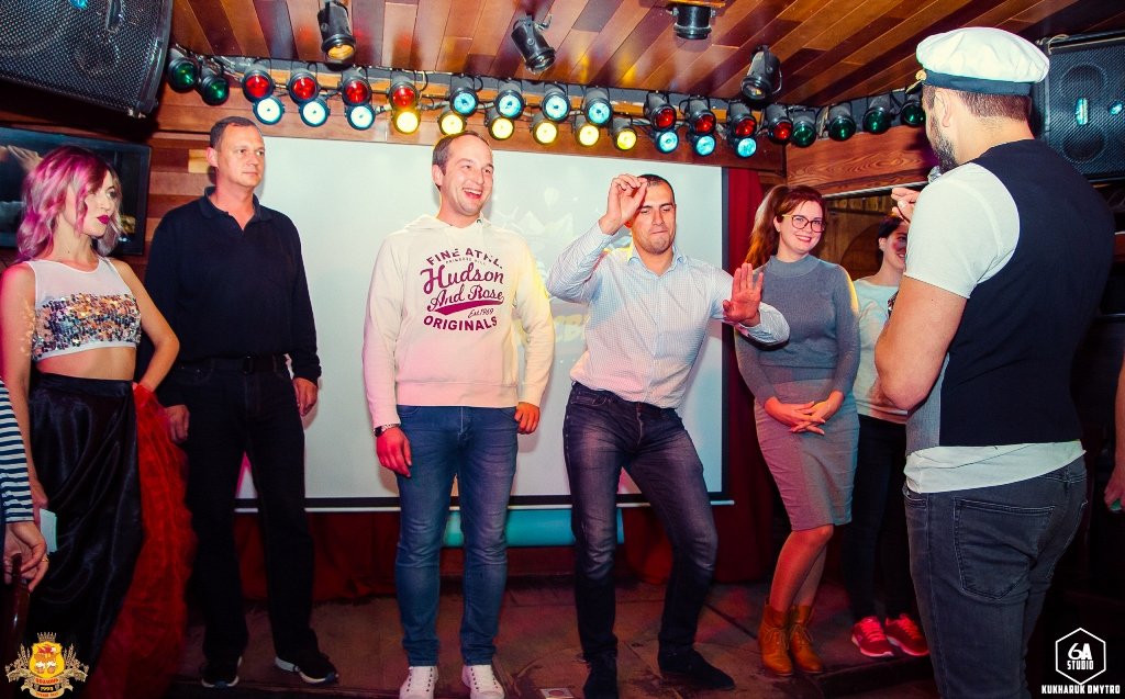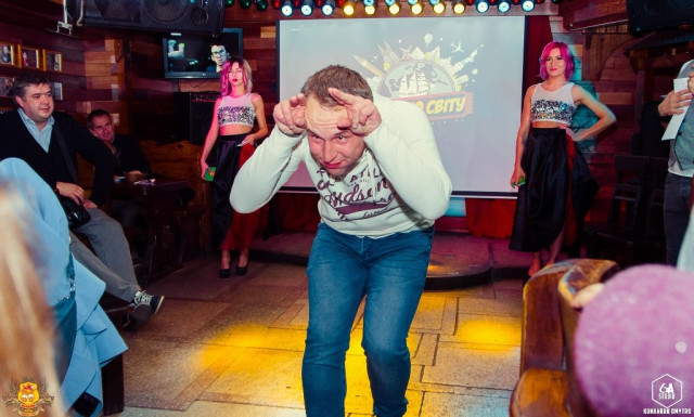 "Штурман Славко Мазурок та боцман Річік влаштували реально круту розважально-туристичну забаву, яка, як нам здалось, страшенно сподобалась і відвідувачам «Оболоні». Ми вгадували столиці, впізнавали за картинками відомі місця світу, співали пісень, робили прямо на сцені тайський масаж, а ще ржали, як коні і дуріли, як діти :)", - пишуть організатори