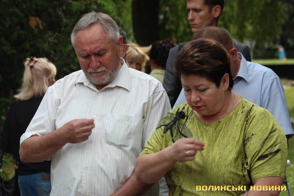 Пирожик Олександр Веніамінович мудра людина,цим жестом Він продемонстрував єдність духовного і світського. У його жесті підтердження слів священика Луцького Свято-Троїцького собору Олександра Безкоровайного, який "закликав пам’ятати полеглих, адже саме їхніми жертвами Україна сьогодні має незалежність". Олександру уважуха.