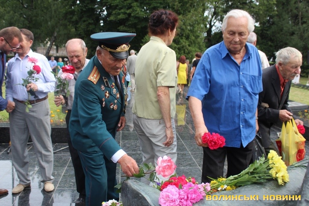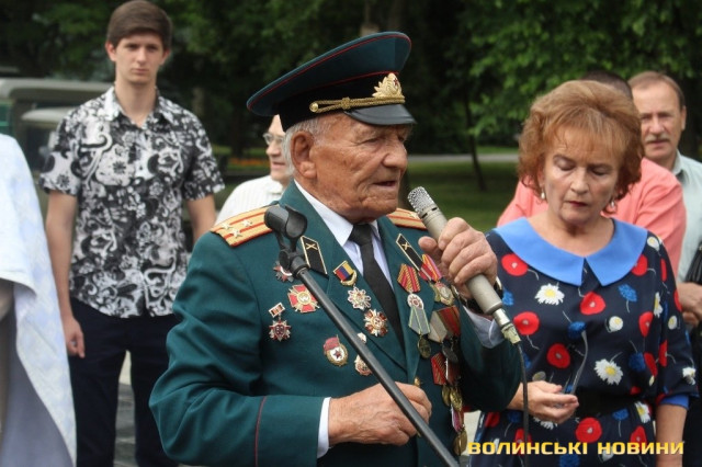 «Тоді не очікували, що хтось прийде грабувати і вбивати. Одні, нападаючи, вбивали та колонізували, а інші, відступаючи, катували, закопували живцем у землю. І все це відбувалося на нашій волинській землі, у Луцьку. Бачимо, що тепер ми знаходимо рештки полеглих, яких замордували «совєтські карателі». І дав Бог, що ми змогли виборити свою незалежність. Сьогодні ми теж маємо війну й повинні пам’ятати кожного полеглого в боротьбі за волю України, адже їхні жертви стануть фундаментом майбутньої могутності нашої держави», - наголосив духівник.Ветеран Другої світової, полковник у відставці Михайло Єрлін, який на власні очі бачив нацистських загарбників під Ковелем, приймав жорстокий бій, каже, що вдалося ворога здолати саме завдяки дружності.