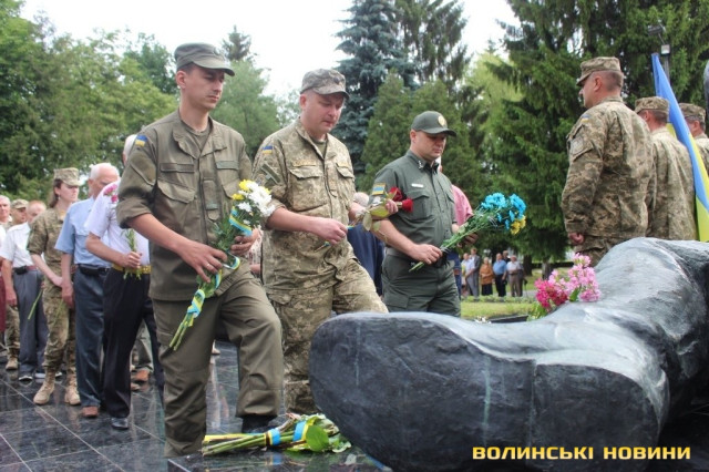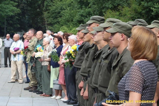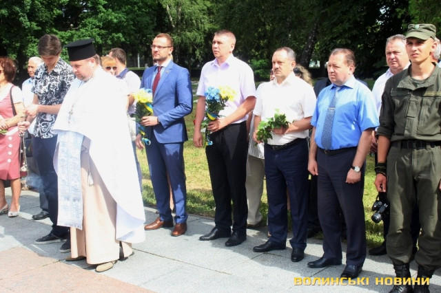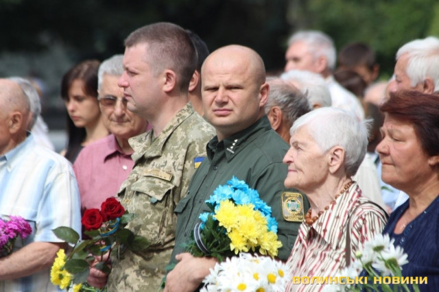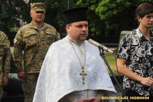 Звертаючись до присутніх священик Луцького Свято-Троїцького собору Олександр Безкоровайний закликав пам’ятати полеглих, адже саме їхніми жертвами Україна сьогодні має незалежність.