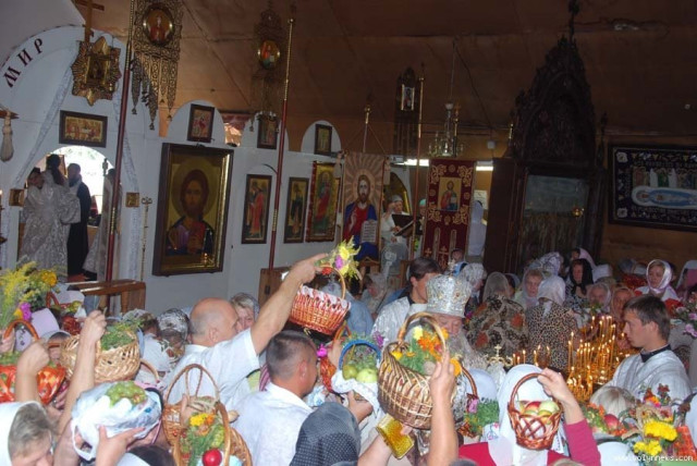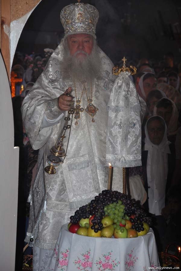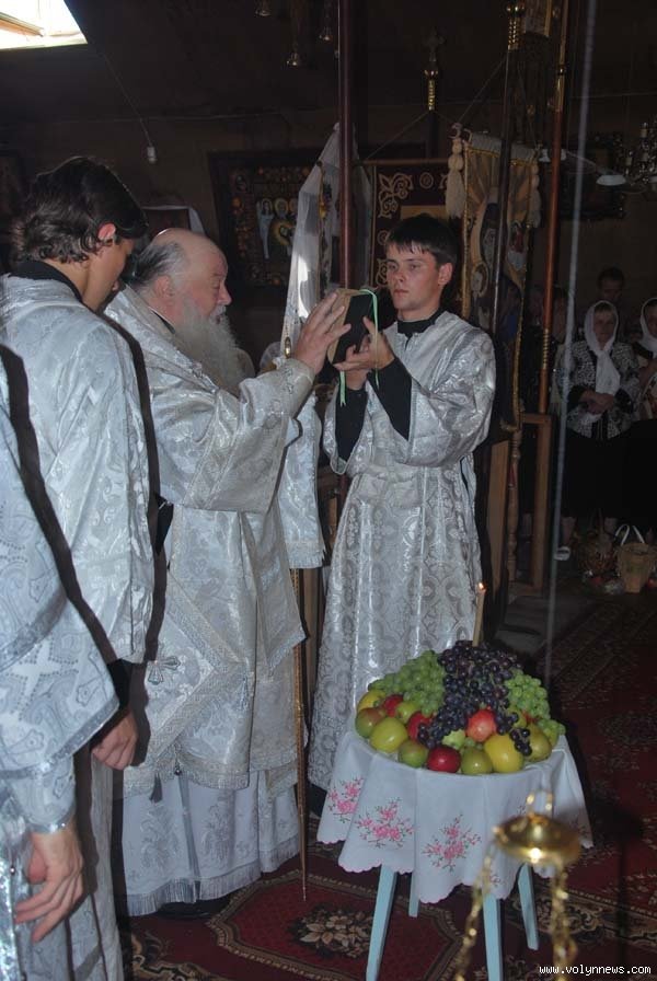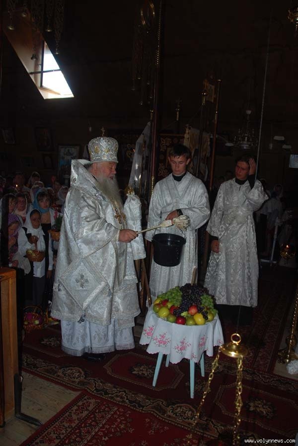 Після закінчення Літургії владика Ніфонт прочитав молитви на освячення винограду і плодів, після чого окропив приношення віруючих святою водою.
