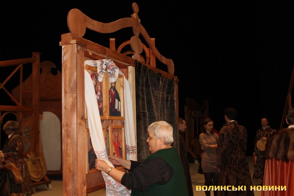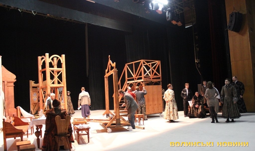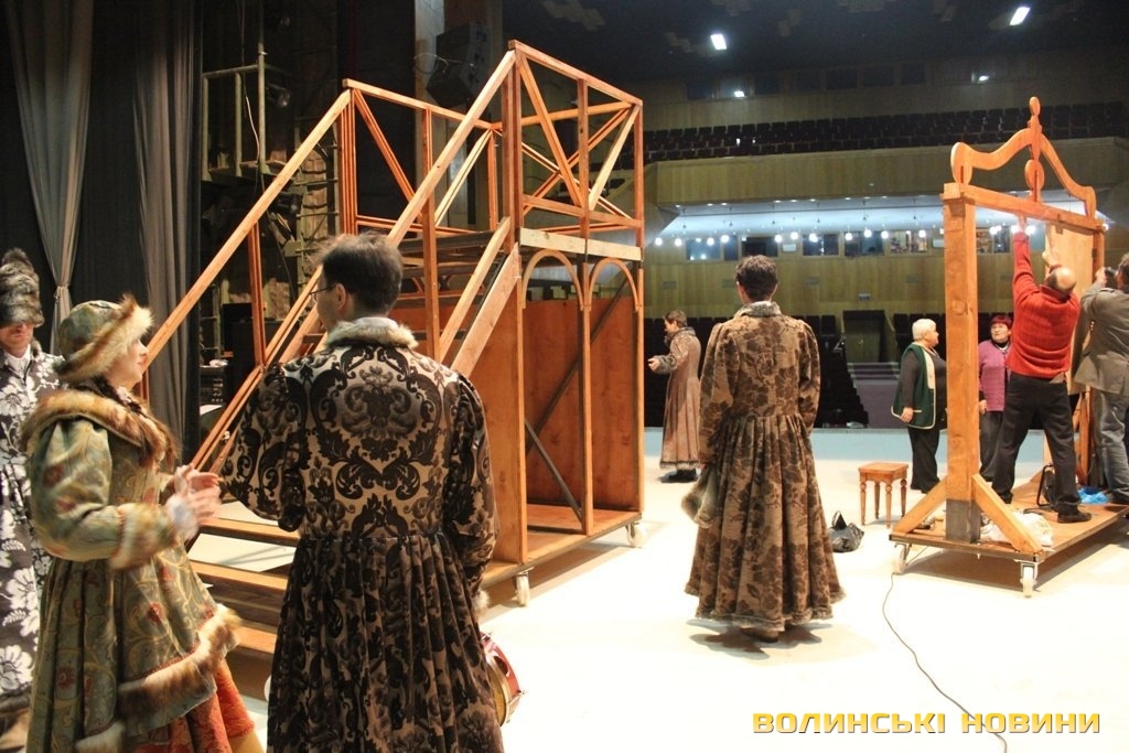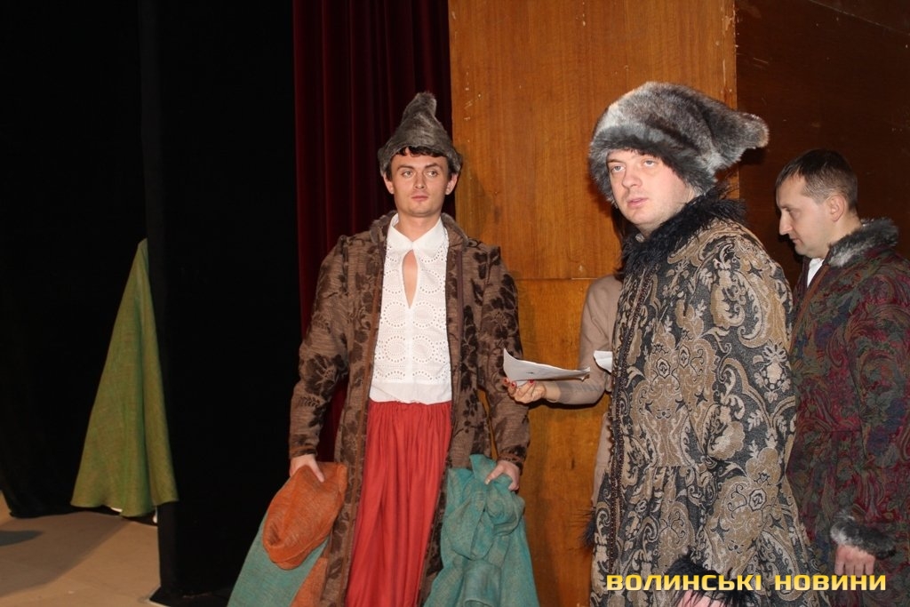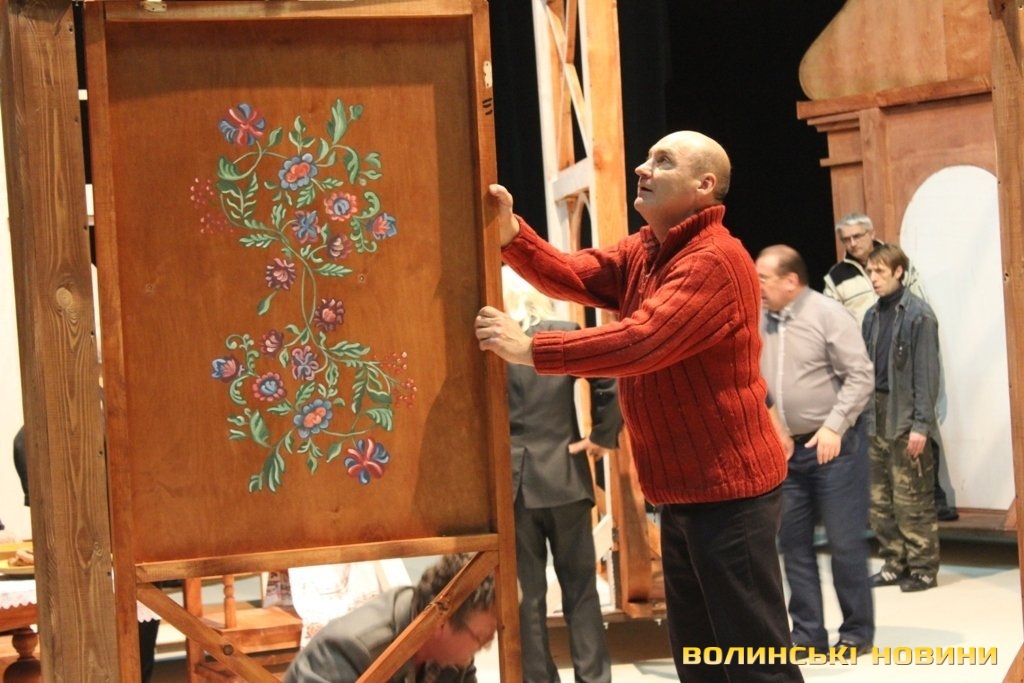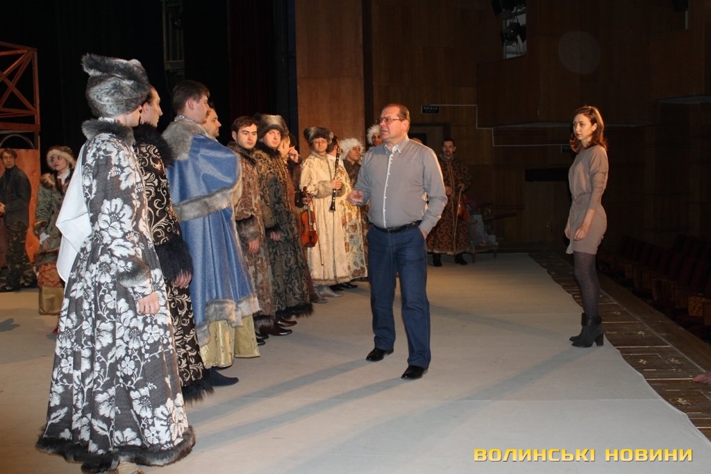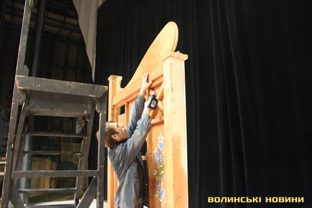 На сцені забивають останні цвяхи, вішають ікони, актори міряють одяг. Режисер-постановник, заслужений діяч мистецтв України Петро Ластівка, перевіривши зачіски у дівчаток, сказав розплести стрічки, бо це не відповідає тодішній епосі.Усе тут має бути на своєму місці, до останньої деталі.