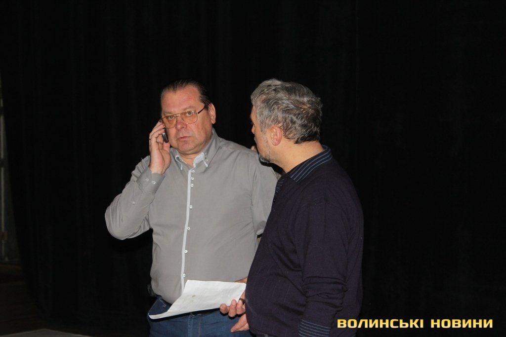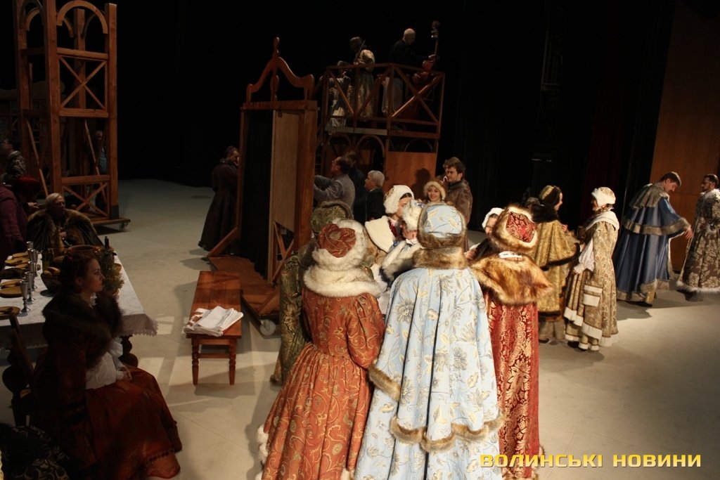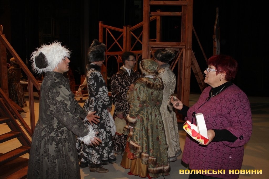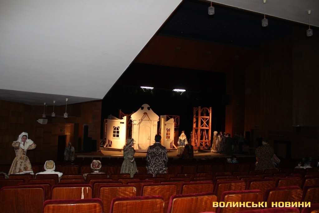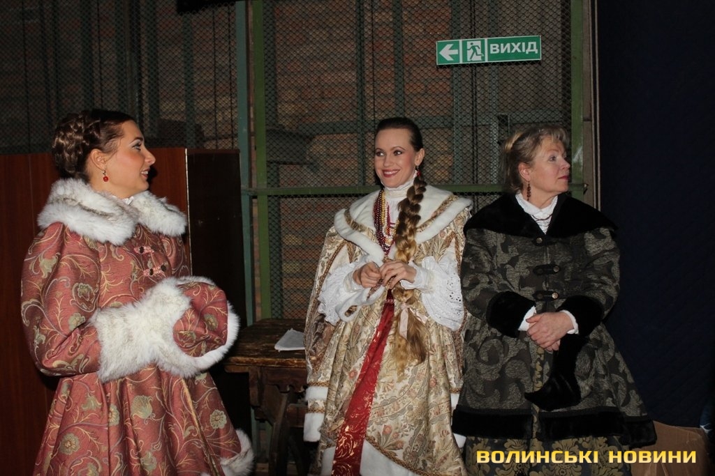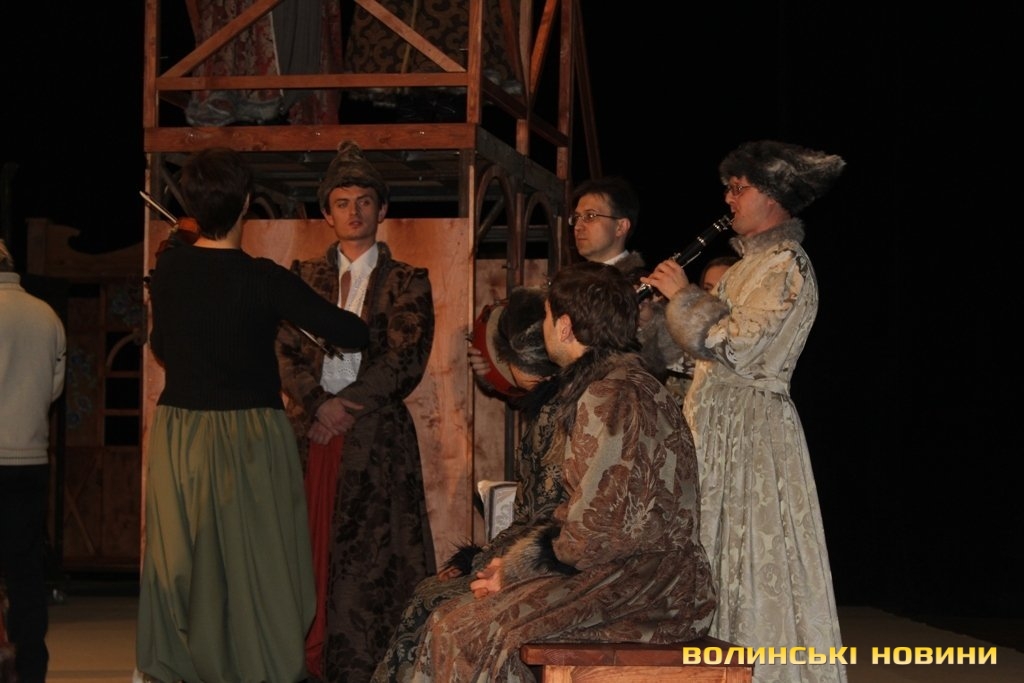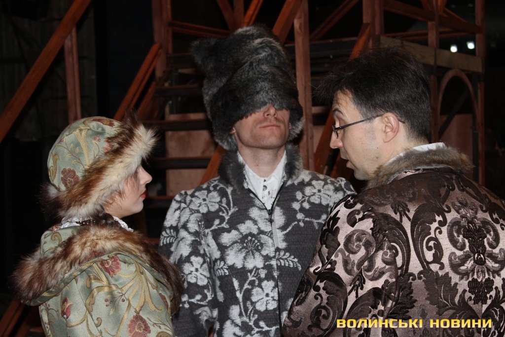 На сцені забивають останні цвяхи, вішають ікони, актори міряють одяг. Режисер-постановник, заслужений діяч мистецтв України Петро Ластівка, перевіривши зачіски у дівчаток, сказав розплести стрічки, бо це не відповідає тодішній епосі.Усе тут має бути на своєму місці, до останньої деталі.