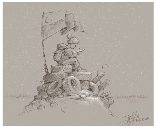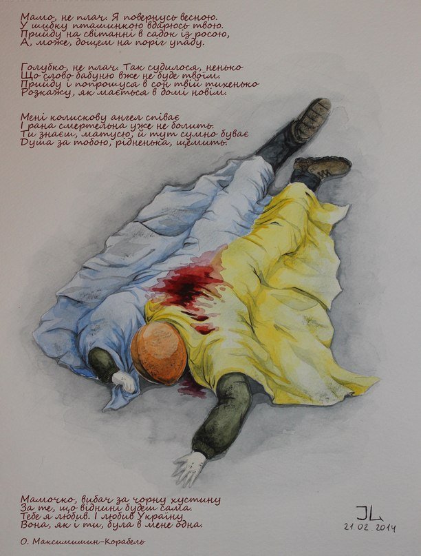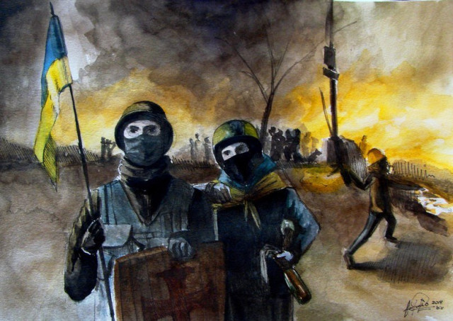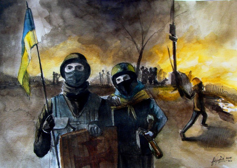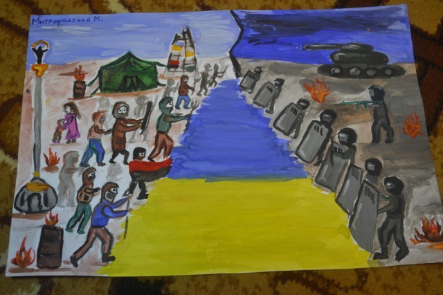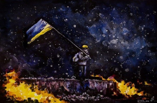 Останні події на Майдані не залишили байдужими українських художників та просто охочих до пензля. За допомогою фарб та іншої «мистецької зброї» народжувались нові картини на революційну тематику. На більшості з них – сльози,смуток та біль за загубленими життями. Кожен змальовував пережите, як умів, аби навіки закарбувати у історію України - події кривавого Майдану.