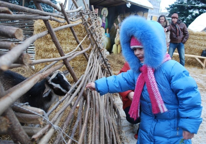Поряд з Дідом Морозом мирно ужився живий вертеп: два парубки у святкових вбраннях, овечка та кізонька. Тварини виявилися товариськими і з задоволенням їли з рук.