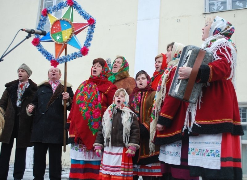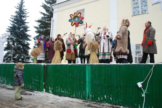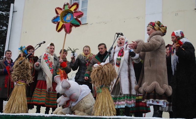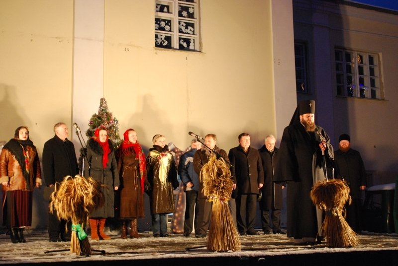 Увечері до народних гулянь на етно-фестивалі долучилися священики різних конфесій та перші особи обласної та міської влад. Як годиться, спочатку усіх вітали, потім, під передзвін дзвонів Свято-Троїцького собору, усі разом колядували.
