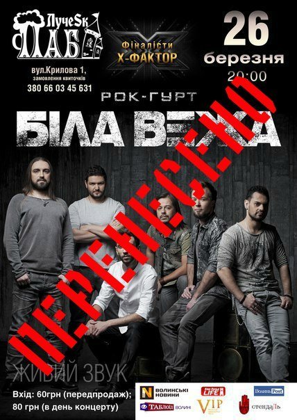 Український музичний рок–гурт «Біла Вежа», учасники шостого сезону національного співочого шоу «Х-Фактор» в зв’язку із жалобними днями у Луцьку переносить свій виступ.