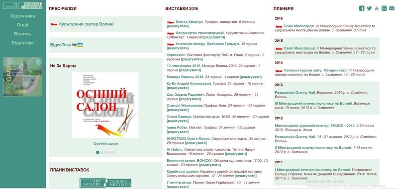 Перші розповіді про 18 волинських художників дали старт кільком напрямкам роботи сайту: «Художники», «Події», «Волинь».