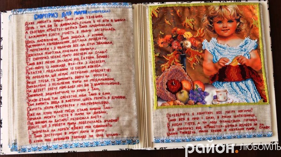 «Мирослава почала вишивати книгу не спеціально для конкурсу. Тоді навіть думки про це не було, − долучається до розмови мама. – Цього забажала її душа. Вона любить цікаві та оригінальні речі. Тому робота приносила донечці велике задоволення».