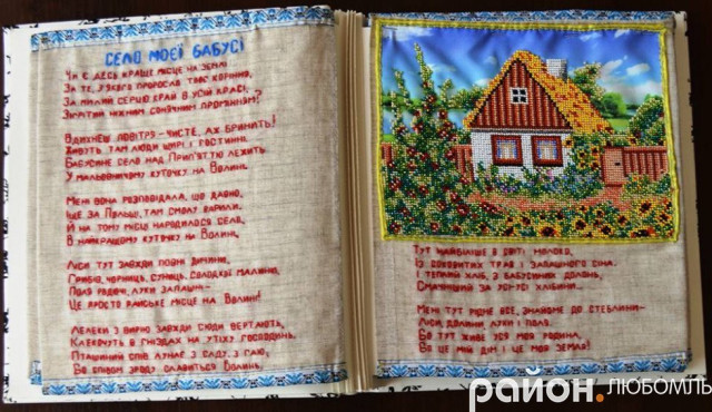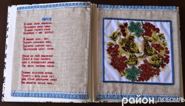 «Ідея вишити книгу прийшла спонтанно, − розповідає Мирослава. – Якось з мамою займалися рукоділлям, і в мене промайнула думка: от якби зробити щось оригінальне, щоб такого ще не було ні в кого… І мама запропонувала спробувати вишити вірш».