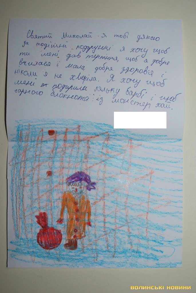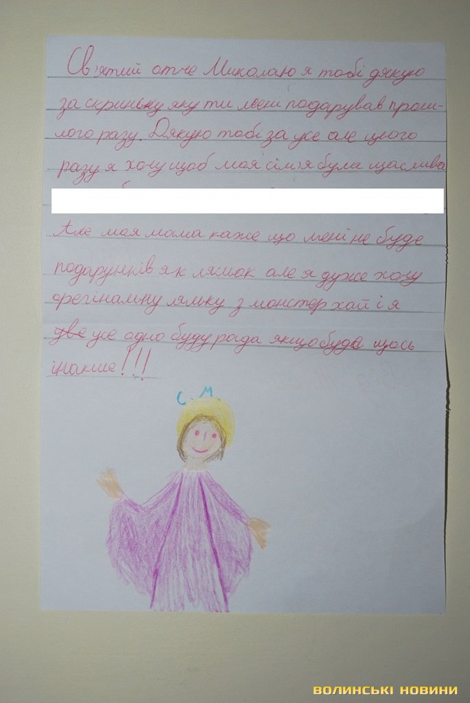 Лист 15: «Святий Миколо, дякую тобі за рік, який ми прожили. Хочу попросити в тебе ляльку, але якщо не зможеш, можеш і не приносити».