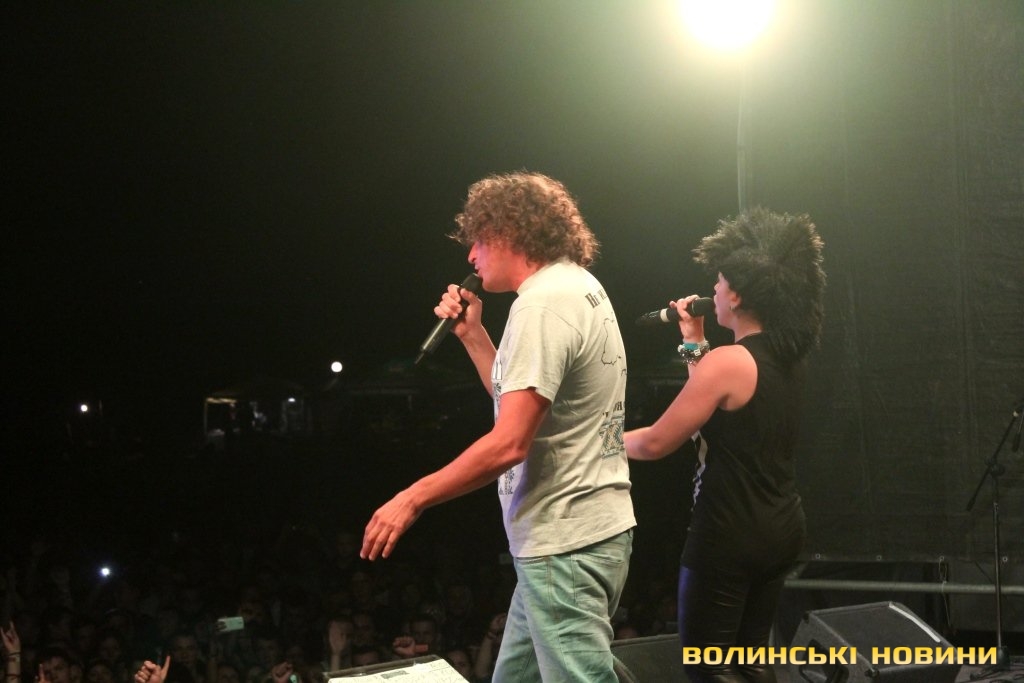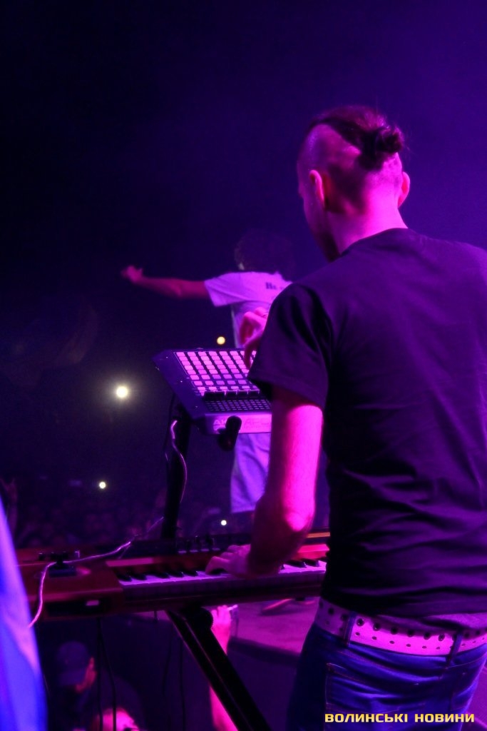Лідер «Скрябіна» у проміжках між піснями як завжди дотепно звертався до публіки, кепкуючи над політичною ситуацією в країні.