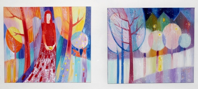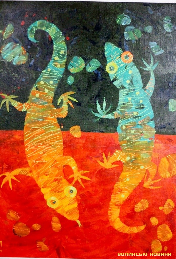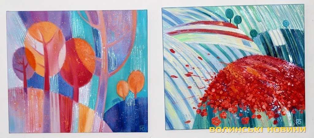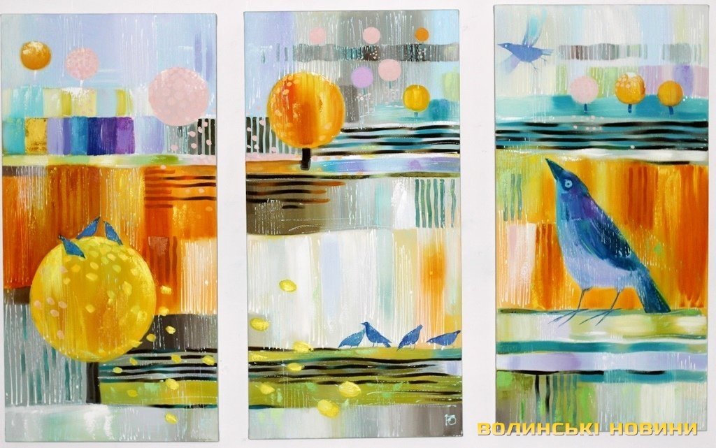 «Я намагаюся в усьому знаходити щось хороше, позитив. Саме з цього ракурсу і підходжу до кожної своєї роботи. От, картина «Світло завтрашнього дня». Це не означає, що сьогодні усе - погано, але це - така надія на краще майбутнє.«У мене було пророче відчуття подій Майдану, напередодні я намалювала триптих, де відобразила час змін. Там є синій птах, як символ ЄС - усе в національних кольорах. Я слідкувала за політикою, за тими подіями, які назрівали у суспільстві, так і з’явилася ця картина.Виставка експонується у «Галереї мистецтв» за адресою вулиця Лесі Українки, 24а, Луцьк.