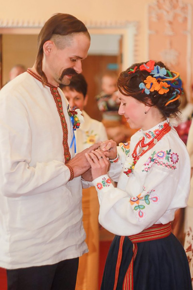 «Ви запитаєте, чому ж вишиванку не вишила йому наречена? – усміхається Ірина Сардак-Бондарук. – Бо вона в цей час створювала власне весільне вбрання. Щоправда, зроблене воно у дещо вільнішій авторській техніці, але з дотриманням таких старовинних елементів крою, як, наприклад, ластовиця».
