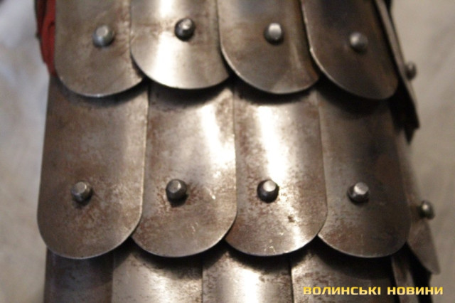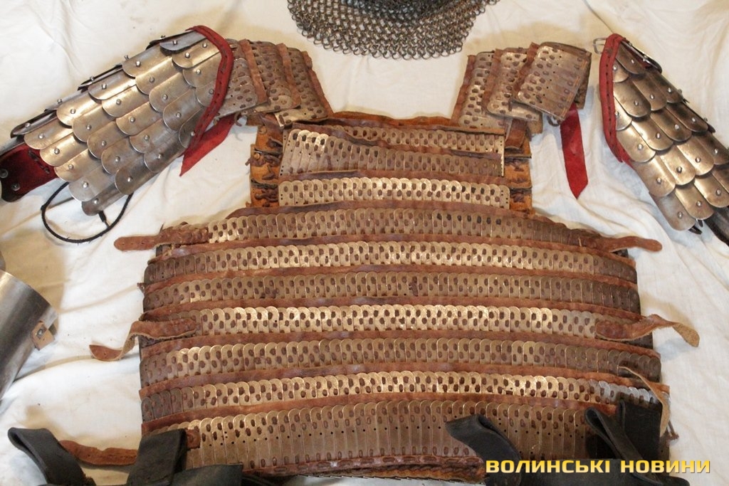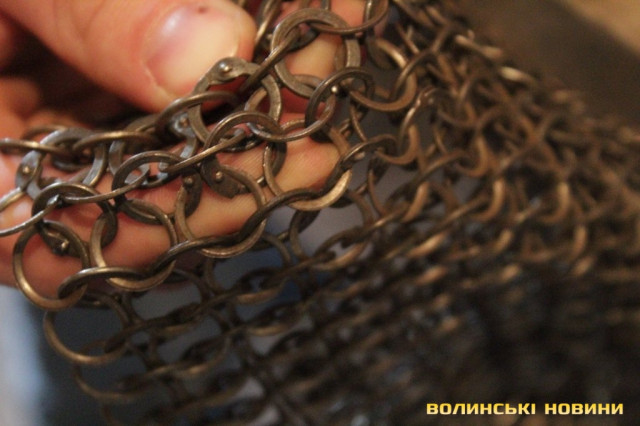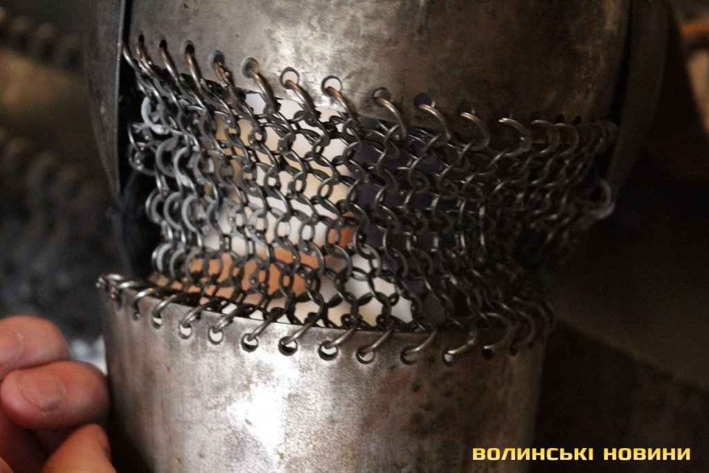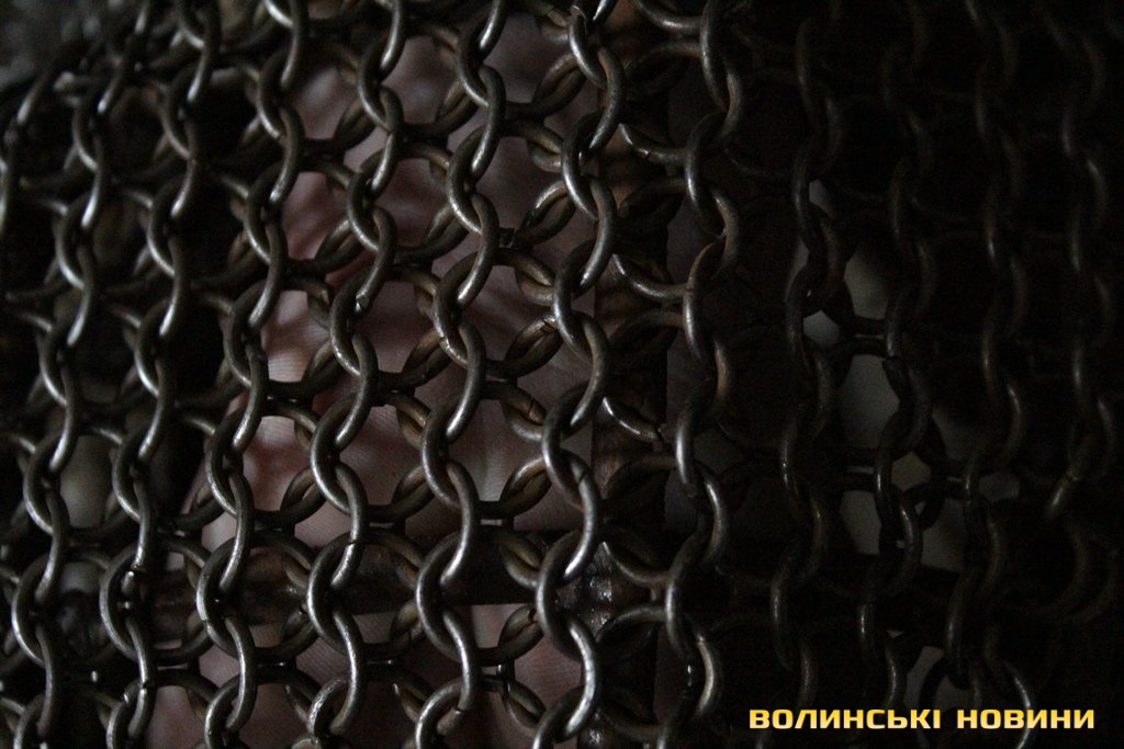 «Коли ви побачите у фільмах, що людина одягає кольчугу (обладунок у вигляді сорочки з металевих кілець, просмикнутих одне в одне та скріплених маленькими клепками) на голе тіло, то в умовах середньовічного бою у кращому випадку вона б вийшла з бою з величезними синцями. Або довелося б витягувати кільця цієї ж самої кольчуги з власного тіла.Як пояснив Андрій, існують різні варіанти кольчуги. До прикладу, середньовічна важить до 10 кілограмів. Утім, враховуючи періоди та регіони, вона може важити і більше. Плетені сорочки можуть бути з довгими та короткими рукавами, до середини бедра й довші.