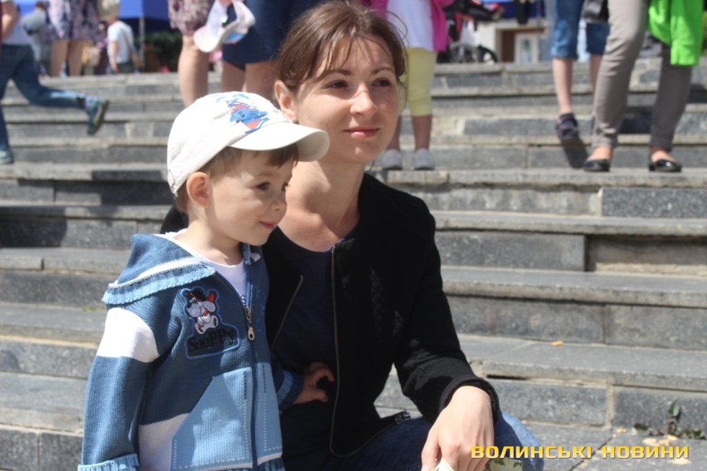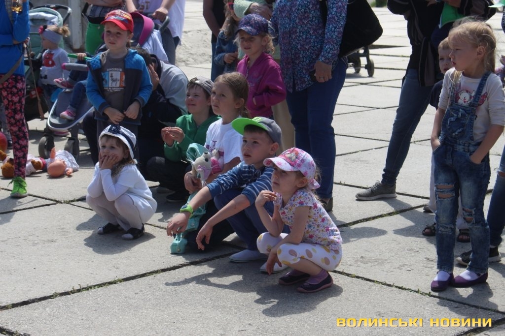 Управління соціальних служб для сім’ї, дітей та молоді Луцької міської ради, своєю чергою, підготувало фестиваль «Моє веселкове дитинство», який відбувається на площі перед луцьким ДРАЦСом.