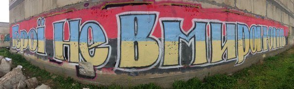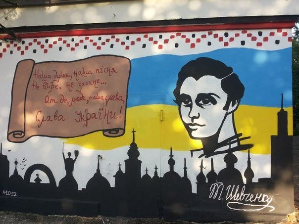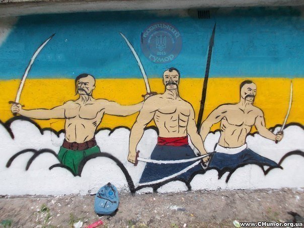 Активісти мають декілька варіантів настінного розпису, отож, можуть зобрразити і душевний український пейзаж, і міцних козарлюг, і національну символіку.