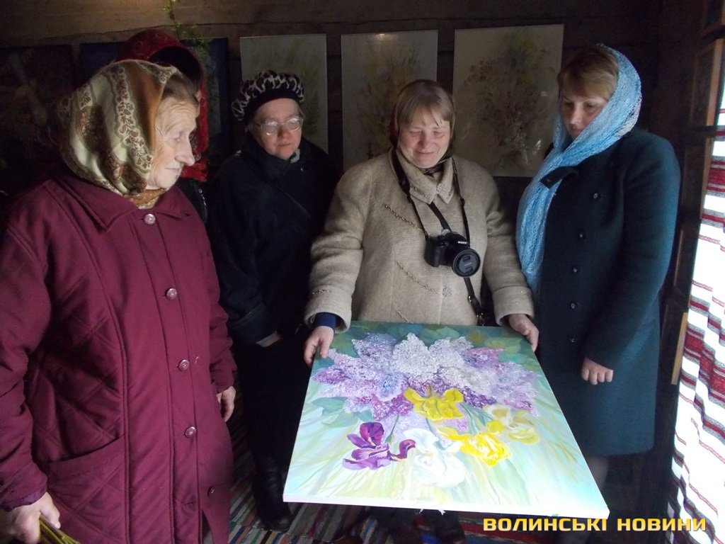Деякі глядачі хотіли роздивитися роботи ближче, і тоді художниця просто зняла картини зі стіни і обговорювала деталі роботи разом з ними, ділилася досвідом, розповідала про свої прийоми роботи над картинами.