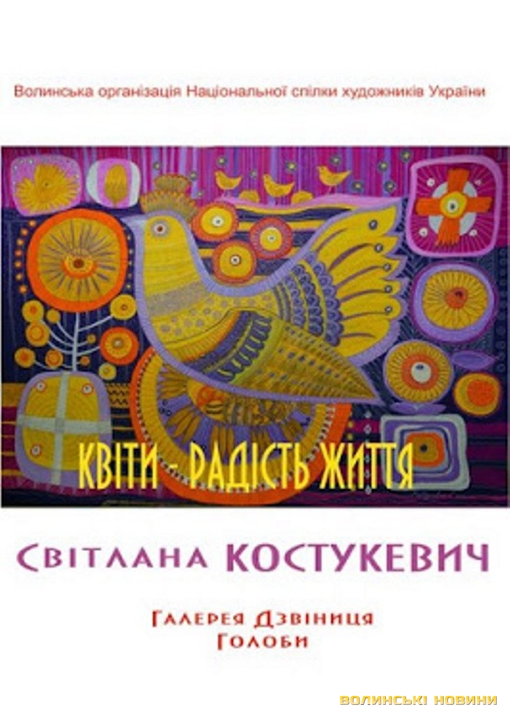 «Не я б’ю – верба б’є, за тиждень – Великдень!», – щиро вітали у Вербну неділю жителі селища Голоби Світлану Костукевич, відому волинську художницю, члена Національної спілки художників України. Саме цього дня в унікальній галереї «Дзвіниця», що знаходиться на території Свято-Георгіївського храму, відбулося відкриття її персональної виставки «Квіти – радість життя».