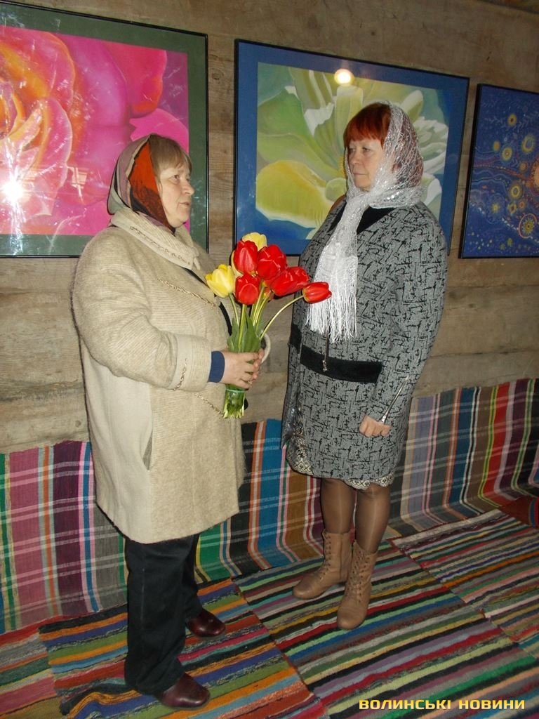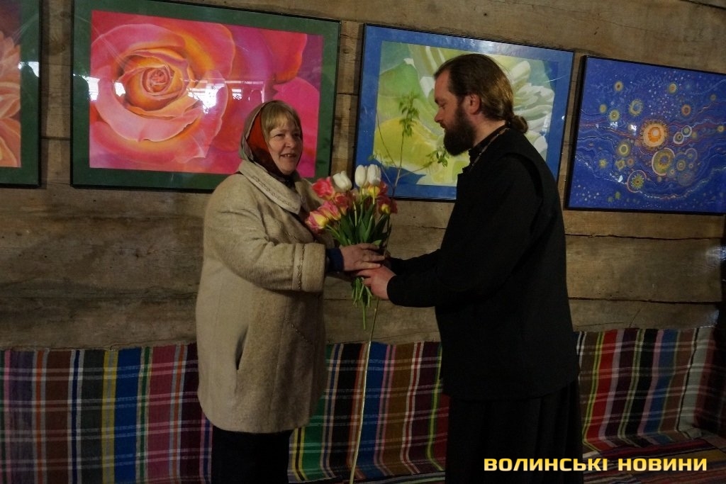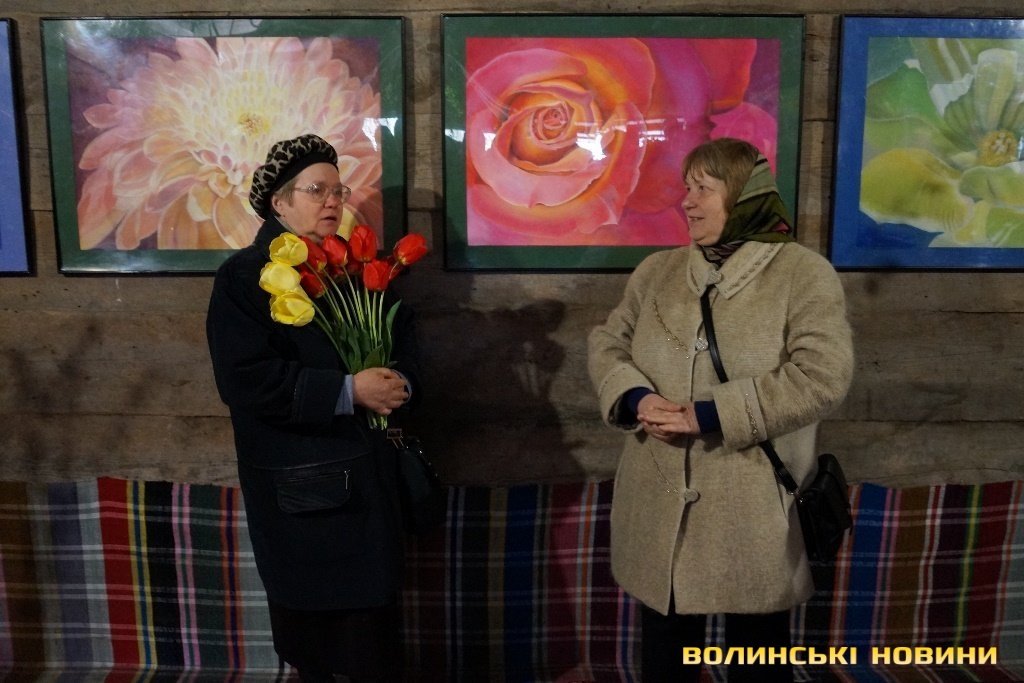 Художниці, яка змалечку обожнює квіти, малює їх все своє творче життя, вдячні глядачі подарували прекрасні тюльпани, які вона пообіцяла намалювати. А коли презентація тільки розпочинала свою роботу, на дзвіниці Свято-Георгіївського храму радісно зазвучали дзвони, – символічно і радісно.