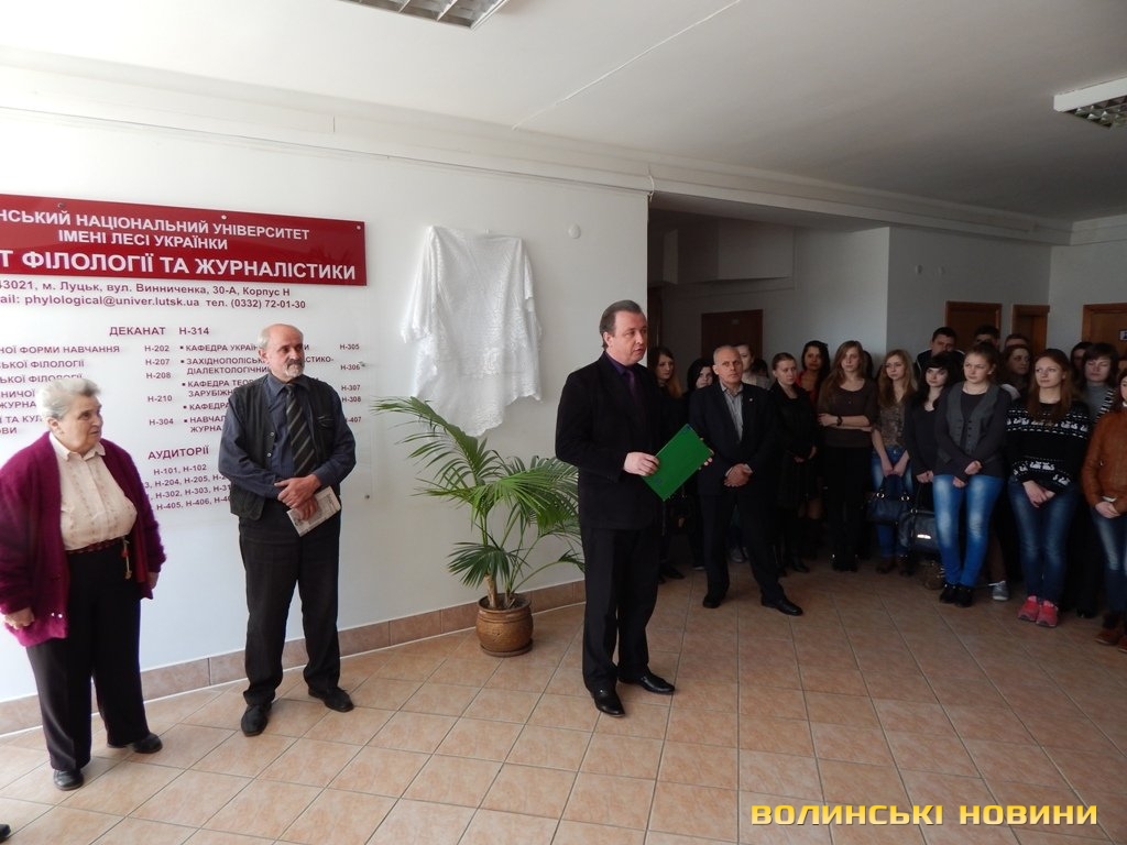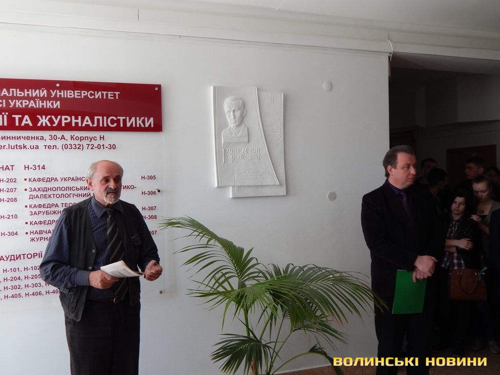 Офіційну частину відкриття розпочав декан Інституту філології та журналістики Юрій Громик. Він заначив, що доля цієї людини тісно пов’язана із Волинню, а особливо із університетом. Тому що саме у колишньому Луцькому учительському інституті навчався Яків Гудемчук. «Поет був змушений залишити Україну у 1947 році і поїхати до Польщі. Але, незважаючи на це, він завжди відчував тісний зв’язок із Луцьком і зізнавався у цьому такими словами: «Святиня серцю найсвятіша, мій отчий дім, моя Волинь».