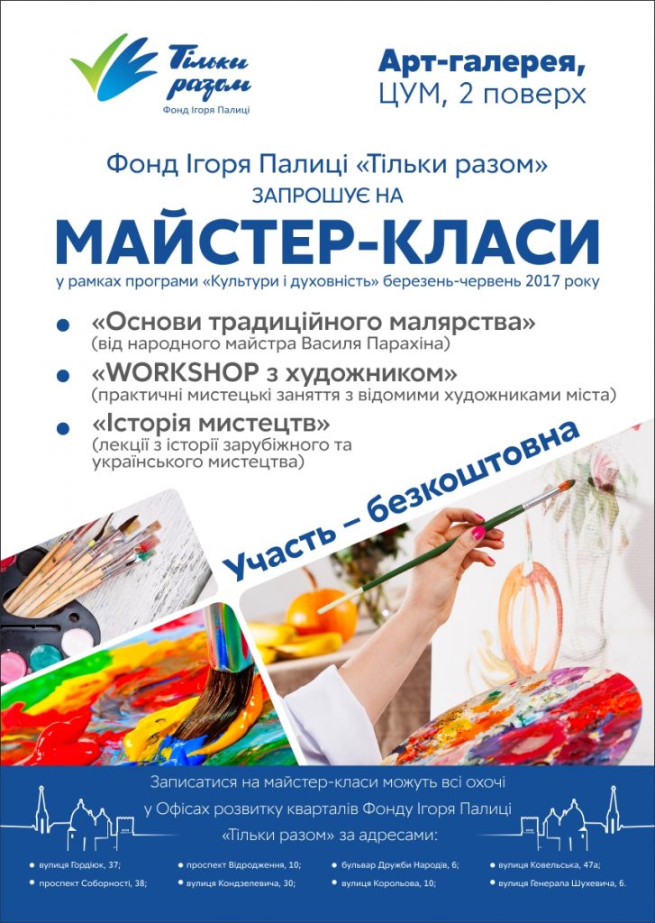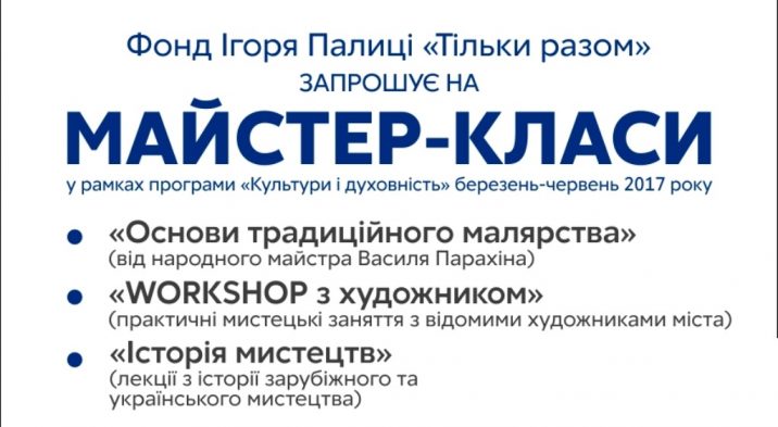 Фонд Ігоря Палиці «Тільки разом» запрошує на майстер-класи в Арт-галерею центрального універмагу Луцька (другий поверх), інформують у прес-службі Фонду.