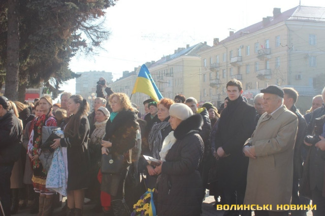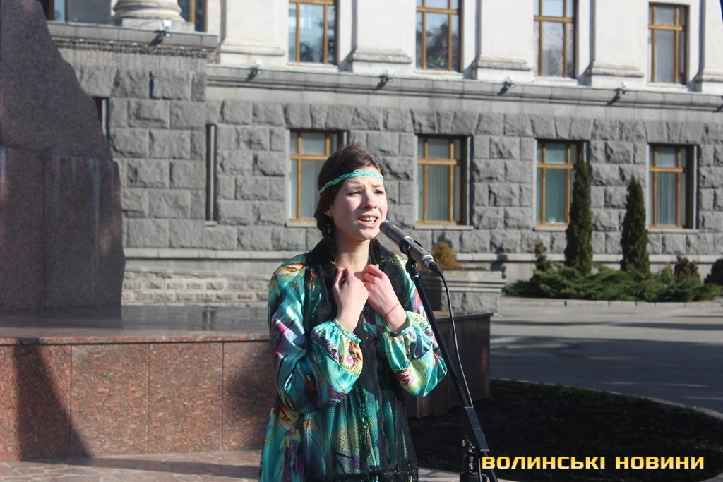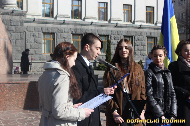 Чимало лучан зібралось біля пам’ятника Тарасу Шевченку сьогодні, 9 березня, щоб вшанувати його пам’ять тематичним флешмобом. Дійство приурочили до 200 річниці з дня народження Тараса Шевченка.