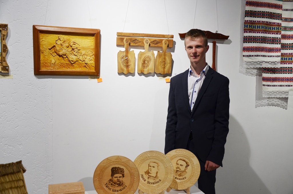 – Участь у виставці взяли мої три тарілки, оформленні тригранною різьбою та випалюванням. Різьбою я займаюся з 4 класу. Навчає мене тато. Ми з ним разом працюємо, вдосконалюємо свої вміння, вчимося чомусь новому. Робимо різні речі, качалки, кухонні прибори, дощечкі. На конкурсі я побачив багато гарних робіт, буду пробувати робити щось нове, – розповідає Богдан.