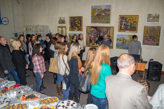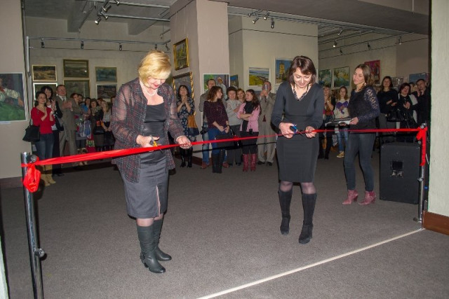 Вперше бачу,щоб на відкритті виставки перерізали червону стрічку...напевно,місцева особливість...) А от з закускою і дівчатами ,по - моєму,все ок)))...