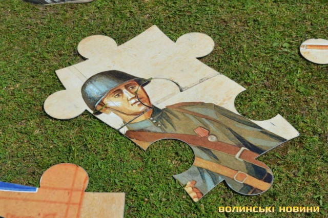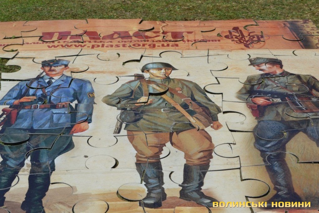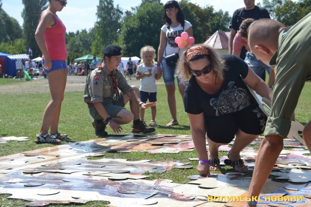 Пластуни з собою на фест привезли величезний пазл, на якому зображено вояків українських військових формувань від часів Київської Русі до УПА. Розміром він – 6х3 метри і складається зі 135 пазл-фігур.