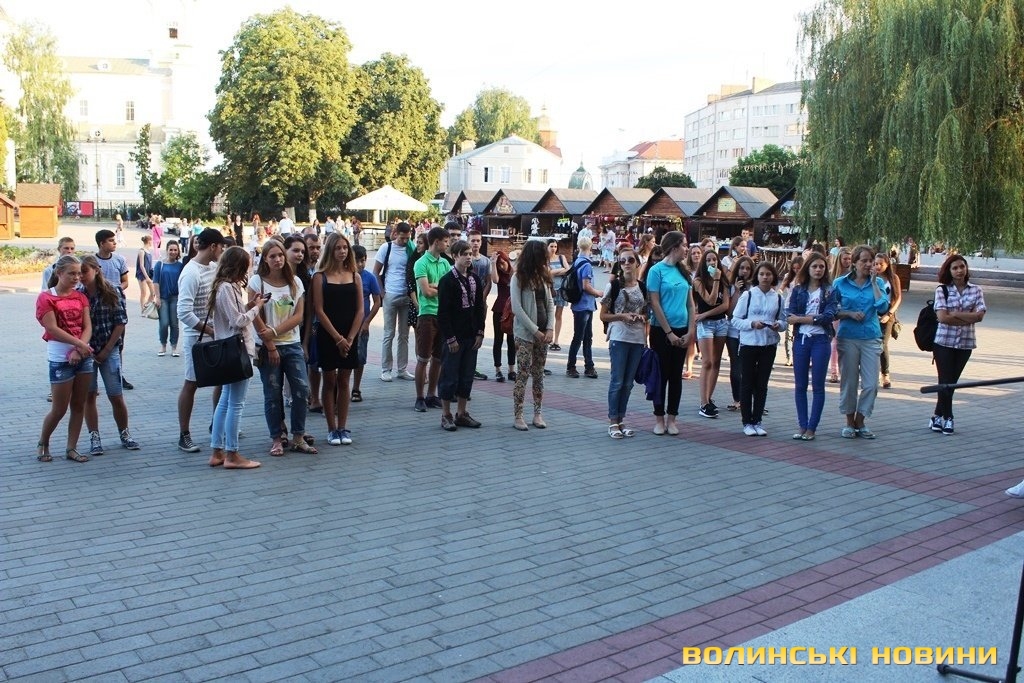 сотні містян та гостей Луцька затихли та світлом мобільних телефонів осяяли ніч.