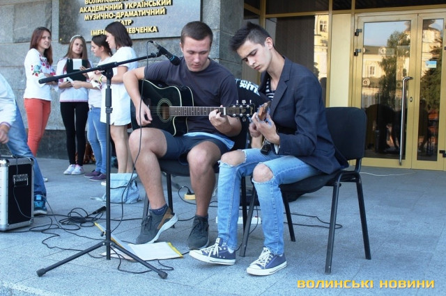 Громадські активісти із «Нацальянсу» запросили луцьких музикантів зіграти пісні Скрябіна.