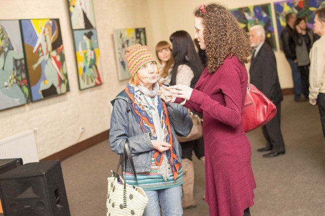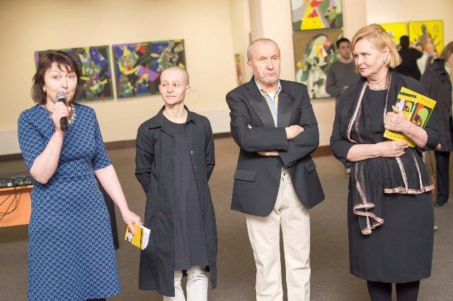 розповіла про біографічний шлях та творчі доробки митців, зазначивши, що для міста це велика честь приймати майстрів такого рівня. До вітальних слів долучилася і мистецтвознавець Зоя Навроцька, яка зазначила, що Петро Гулин розпочав працювати в жанрі геометричних абстракцій та кольорових ліній ще в радянські часи і досить швидко здобув всесвітнє визнання. Його картини прикрашають музеї та приватні колекції багатьох країн світу, у тому числі – у Великобританії, Німеччині, Італії, Австралії, США та навіть в Японії.