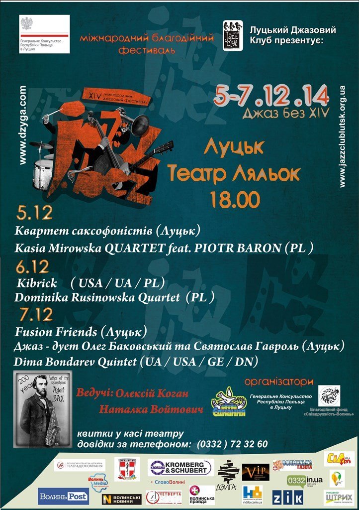 Один із найгучніших джазових фестивалів в Україні уже всьоме прийматиме Луцьк. Особливістю цьогорічного фестивалю буде відзначення 200-річчя від дня народження Адольфа Сакса, винахідника саксофону. Тому програма фестивалю в Луцьку буде зосереджена на відомих саксофоністах, - повідомили організатори.