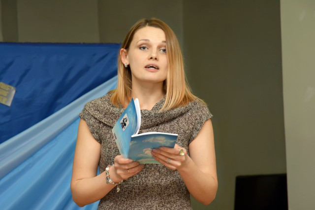У «літературно-творчий політ» вона запросила родину і друзів, колег по роботі, численних волинських літераторів та шанувальників лірики.Творче резюме авторки: Ольга Антош народилася в 1987 році у селі Кортеліси Волинської області. З 2001 року мешкає у Луцьку. У 2011 році закінчила Волинський національний університет імені Лесі Українки за спеціальністю «українська мова та література». Працює вихователем у дошкільному навчальному закладі №14. Цікавиться сучасною літературою, любить перечитувати класику детективного жанру, сатиричні та іронічні твори. Учасниця літературно-мистецької студії «Зорі над Стиром» та літературно-мистецького об’єднання «Без меж». Цього року Ольга стала однією з авторок дебютного альманаху об’єднання «Танго безмежжя».Не випадково видання першої книги молодого літератора природно асоціюють з народженням первістка, адже цьому передує його закоханість у поетичне слово, виношування власного творчого задуму та хвилювання в очікуванні появи «дитини» на світ. Якою вона буде і як складеться її доля? Збірка з 70 віршів з обкладинкою у небесно-блакитній кольоровій палітрі – це плід кількарічної кропіткої праці Ольги та перший її тріумф у пошуку свого Неба. А імпульсом до її створення стали рядки з поезії видатної Ліни Костенко: «Не окрилюй того, з ким не збираєшся в небо…».На зустрічі Ольга розповіла, що разом із сестричкою Анею ще в дитинстві складала віршики, але писати поезію почала порівняно недавно, чим навіть подивувала свою родину. Розгледіти Божу іскру молодої жінки у її спробах виплеснути свої враження та емоції у віршах зуміла визнана волинська поетеса, літературний критик Марія Пишук.