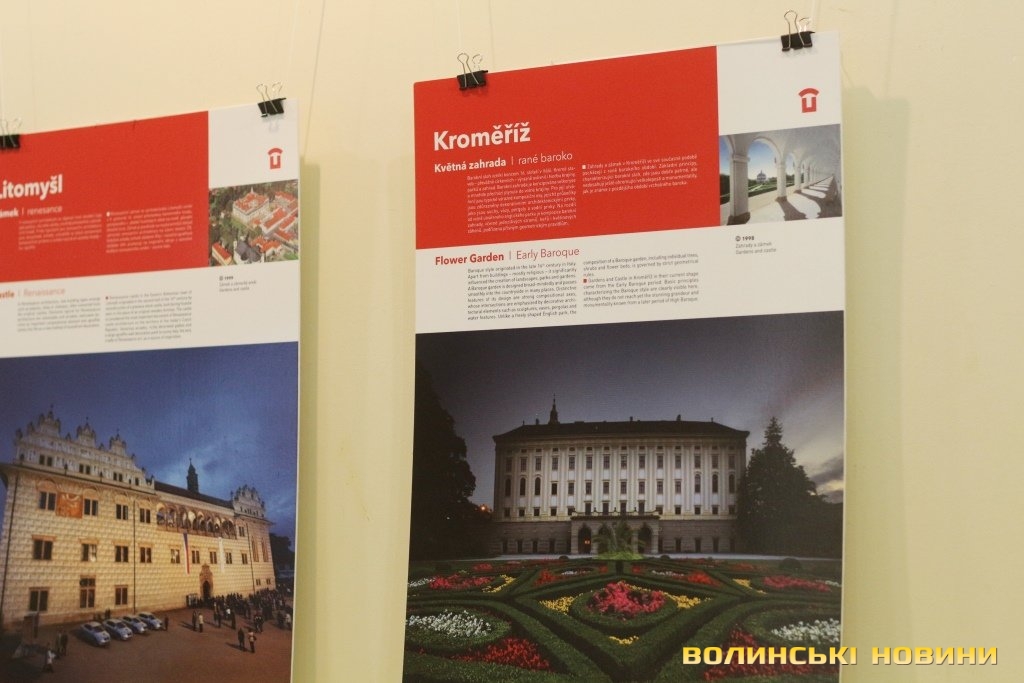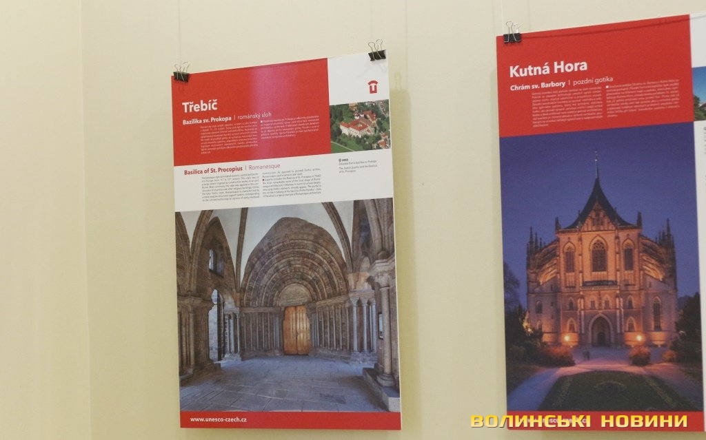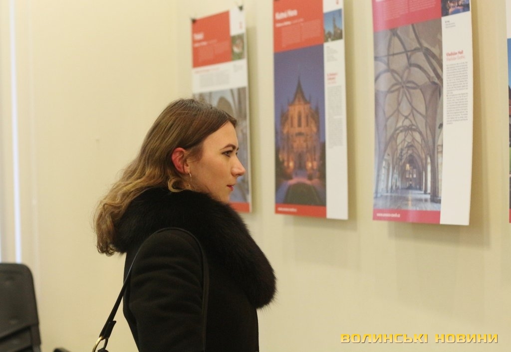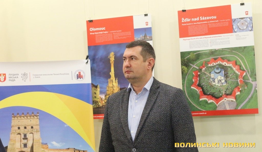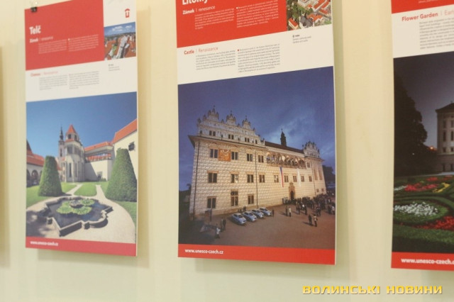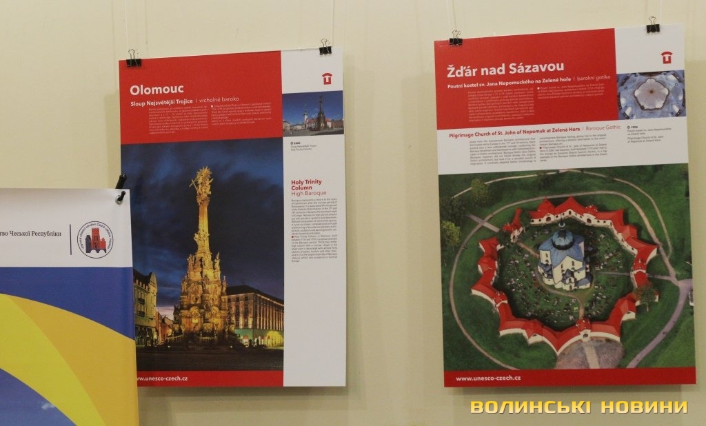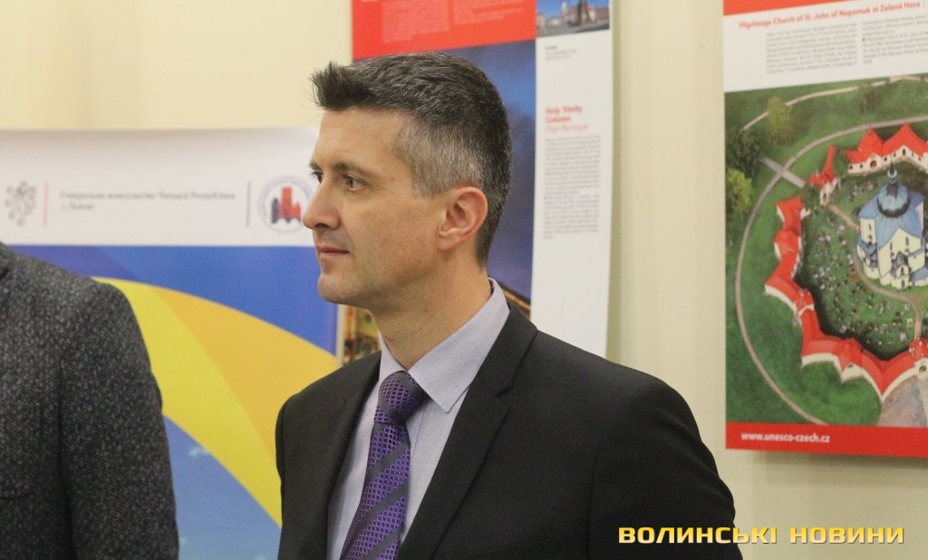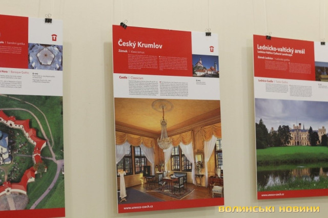 Він розповів, що виставка про річницю Оксамитової революції розміщена у Східноєвропейському національному університеті, вечорами відбуватимуться покази чеських кінофільмів. Сьогодні у рамках виставки в арт-галереї «Луцьк» демонстрували світлини 12 чеських об’єктів культурної спадщини ЮНЕСКО. Як наголосив генеральний консул, у Чехії варто побачити не лише історичний центр Праги, що входить до списку світової культурної спадщини ЮНЕСКО, а й низку інших цікавих місць. Окрім цих 12 матеріальних пам’яток, до списку ЮНЕСКО цього року додали ще дві – гірничий регіон Krušné hory (Рудні гори) на кордоні з Німеччиною, де видобували срібну руду та олово, а також кінський завод у місті Кладруби над Лабем з прилеглими ділянками, де розводять унікальну породу тягових коней, які у минулому служили при цісарському дворі Габсбургів.