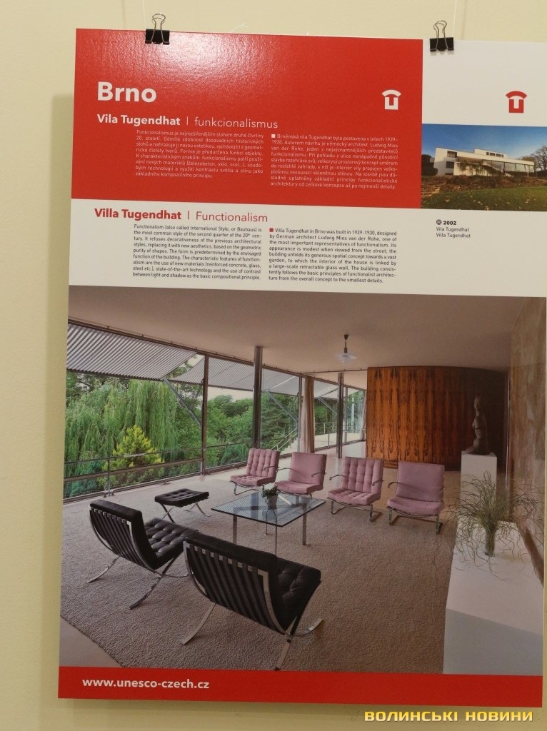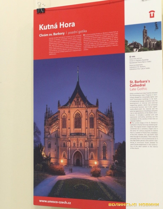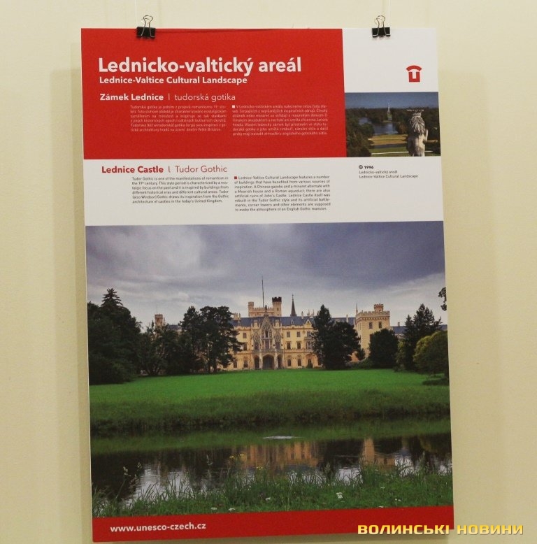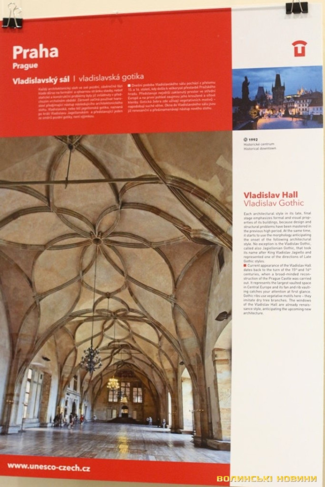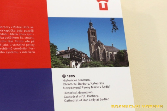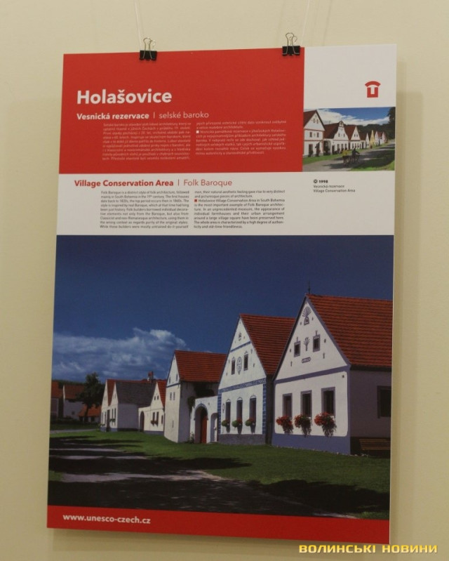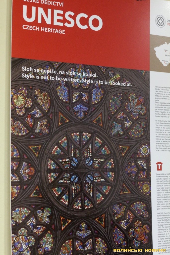 Він розповів, що виставка про річницю Оксамитової революції розміщена у Східноєвропейському національному університеті, вечорами відбуватимуться покази чеських кінофільмів. Сьогодні у рамках виставки в арт-галереї «Луцьк» демонстрували світлини 12 чеських об’єктів культурної спадщини ЮНЕСКО. Як наголосив генеральний консул, у Чехії варто побачити не лише історичний центр Праги, що входить до списку світової культурної спадщини ЮНЕСКО, а й низку інших цікавих місць. Окрім цих 12 матеріальних пам’яток, до списку ЮНЕСКО цього року додали ще дві – гірничий регіон Krušné hory (Рудні гори) на кордоні з Німеччиною, де видобували срібну руду та олово, а також кінський завод у місті Кладруби над Лабем з прилеглими ділянками, де розводять унікальну породу тягових коней, які у минулому служили при цісарському дворі Габсбургів.