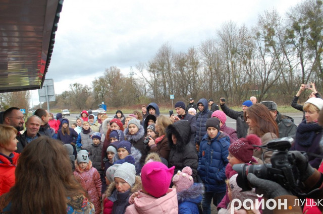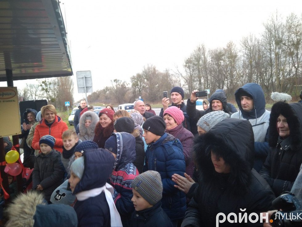 На урочисте відкриття унікальної, «солоденької» зупинки завітало чимало сирничан і гостей, які не побоялися холоду.Голова Княгининівської ОТГ Олена Твердохліб дружно разом із депутатами та громадою перерізала червону стрічку й урочисто відкрила зупинку у Сирниках.«Як в смачному селі ми могли по-іншому придумати тематику зупинки, тому й витворили зупинку у вигляді кухні. На стінах бачите, як чарівна паняночка готує золотисті сирнички, а чоловік спостерігає за цим. Дитина також уже в передчутті, і хоче покуштувати ці смаколики. На зупинці є й справжні елементи декору: це стілець, горня, свічка», – зазначила авторка проекту Галина Гарбарук.Задум в реальність допоміг втілити художник Василь Михайлович, який зумів точно передати ідею пані Гарбарук.