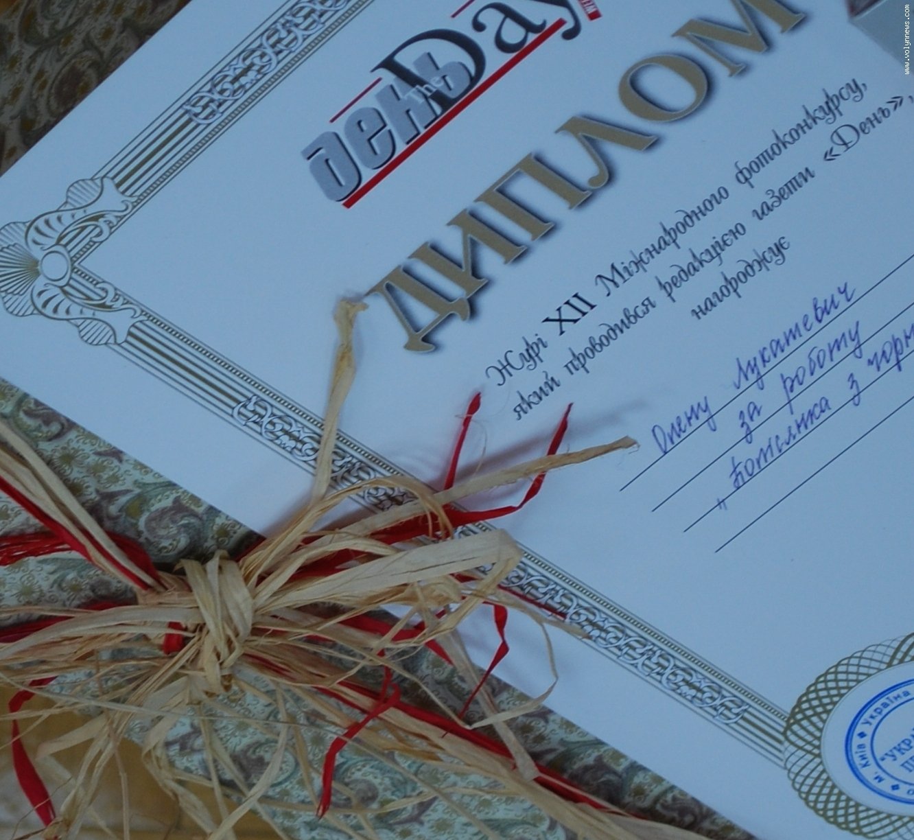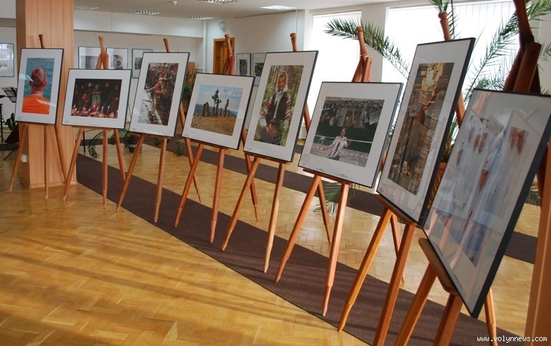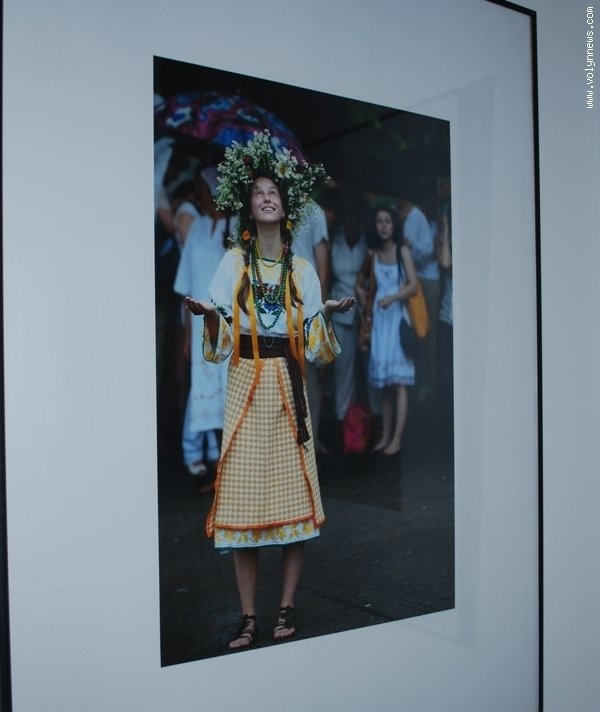 На виставці представлені кращі світлини професійних фотокорів та аматорів, які стали переможцями XII Міжнародного фотоконкурсу газети «День». Серед них і робота волинянки Олени Лукашевич «Полісянка з чорницями».