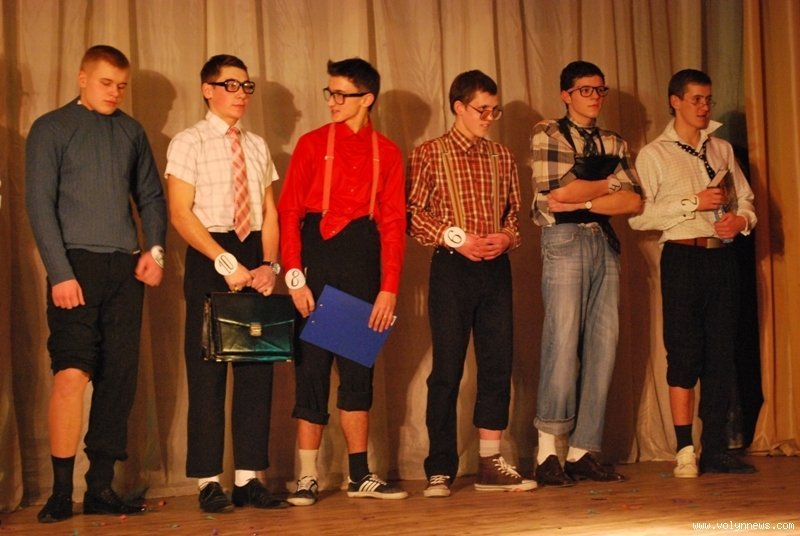 А по-моєму, це навпаки заставляє хлопців думати про свій зовнішній вигляд, бо хлопець, як і дівчина, має гарно виглядати і т.д. Але це не говорить про те, що їм треба нігті фарбувати тощо. Були деякі моменти там досить цікаві, але все одно хлопці ще не підходять серйозно до цього конкурсу, низький рівень підготовки, особливо у творчих конкурсах і у рекламі ВНУ.