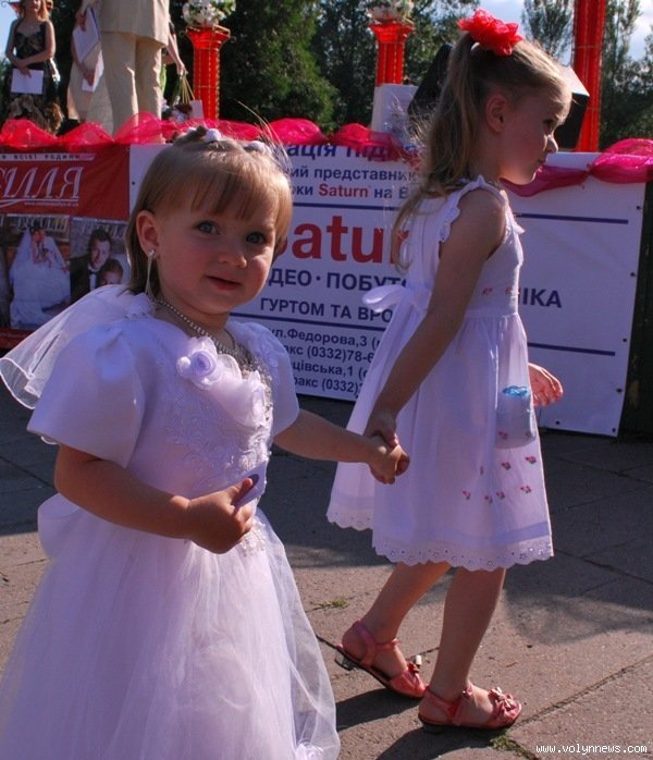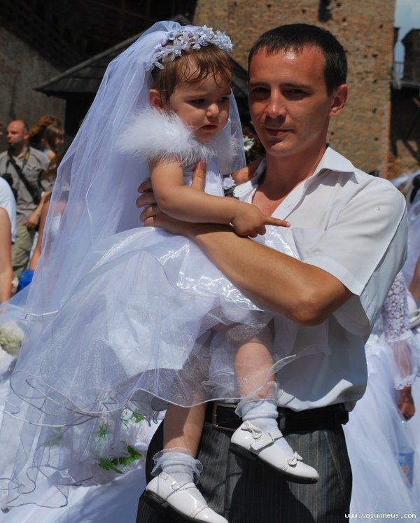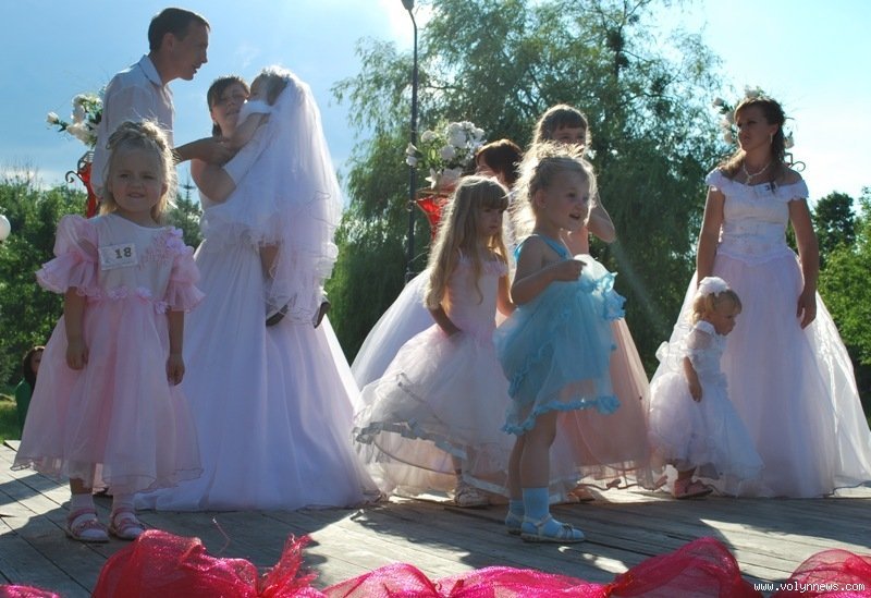 Наприклад, Аліса Кравчук змогла відчути себе нареченою вже у два роки. Її батько Олександр розповідає, що у параді бере участь також його дружина та її сестра. Поки що загадувати, коли віддавати дочку заміж не хоче, але жартує, що залицяльники вже є.