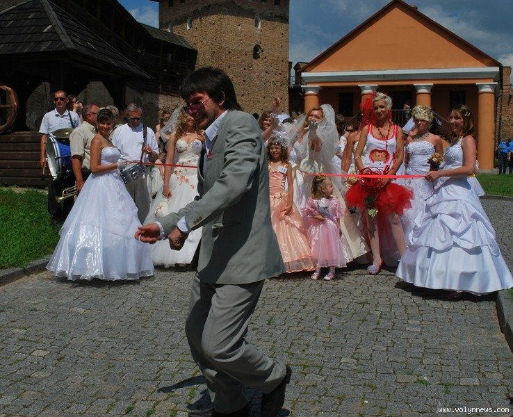 Засновник журналу «Ваше весілля» Олена Кіц та директор історико-культурного заповідника «Старий Луцьк» Тарас Рабан перерізали червону стрічку, й наречені під звуки оркестру пішли в люди. Маршрут дівчат пролягав через центральні вулиці Луцька до парку Лесі Українки.