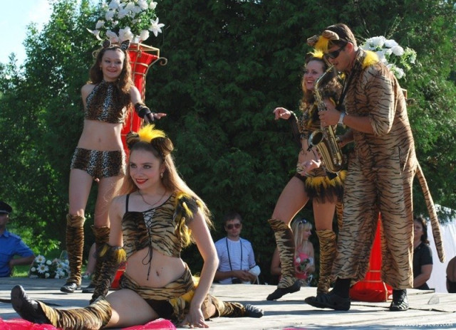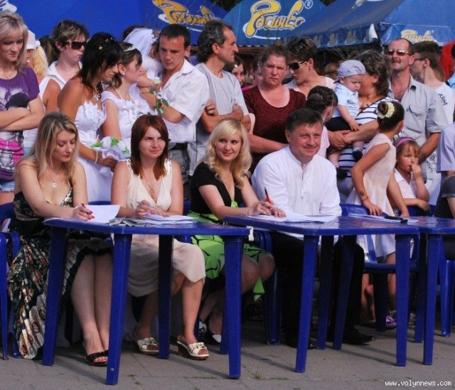 Парад просто вразив:наречені шикарні,артисти викладалися на повну котушку,а так натхненно,розкуто і супер_пупер професійно заводити зморену страшенною спекою публіку може тільки енерджайзер вячеслав добжанський.На славкові був надоригінальний костюм від Леодора Кравчука. У ньому він виглядав як топ_модель.А ще мені дуже сподобалася як жінка молодий чиновник Оля Коритнєва.