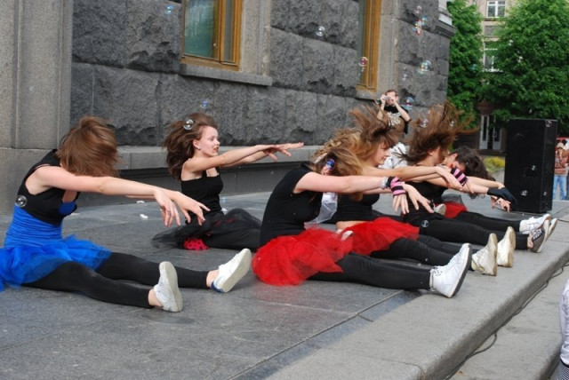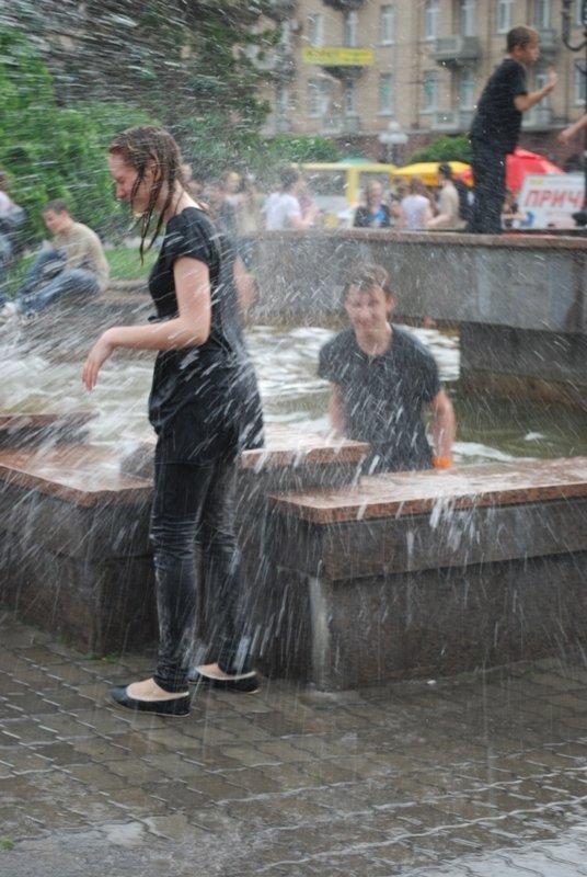 Акція розширила свої «кордони» і її учасники згодом «окупували» фонтан. Веселились, поки не почався дощ, через що свято зупинили на півгодини раніше запланованого часу.