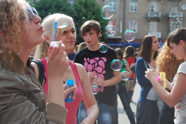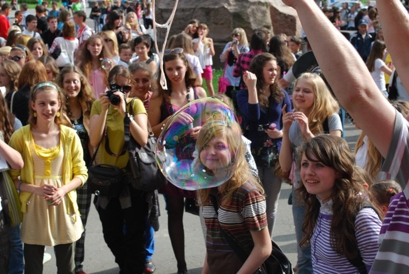 Перший день літа молодь Луцька зібралась відсвяткувати без алкоголю та сигарет, натомість для розваги обрала мильні бульбашки у рамках ІІ щорічного Параду бульбашок, що відбувся на площі біля головного корпусу ВНУ імені Лесі Українки.