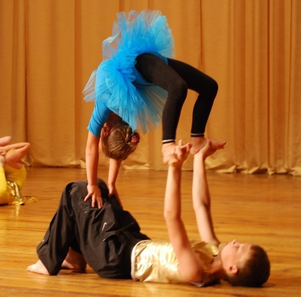 «Ось наша Аліна Колбун хворіла на запалення легень. Але, коли вона лежала в лікарні, то час від часу розтягувалася. І от одного разу вона так розтягнула спину, що могла зробити акробатичні трюки. Відтоді ми почали набирати дітей, які би хотіли танцювати із акробатичними трюками», - каже Юлія